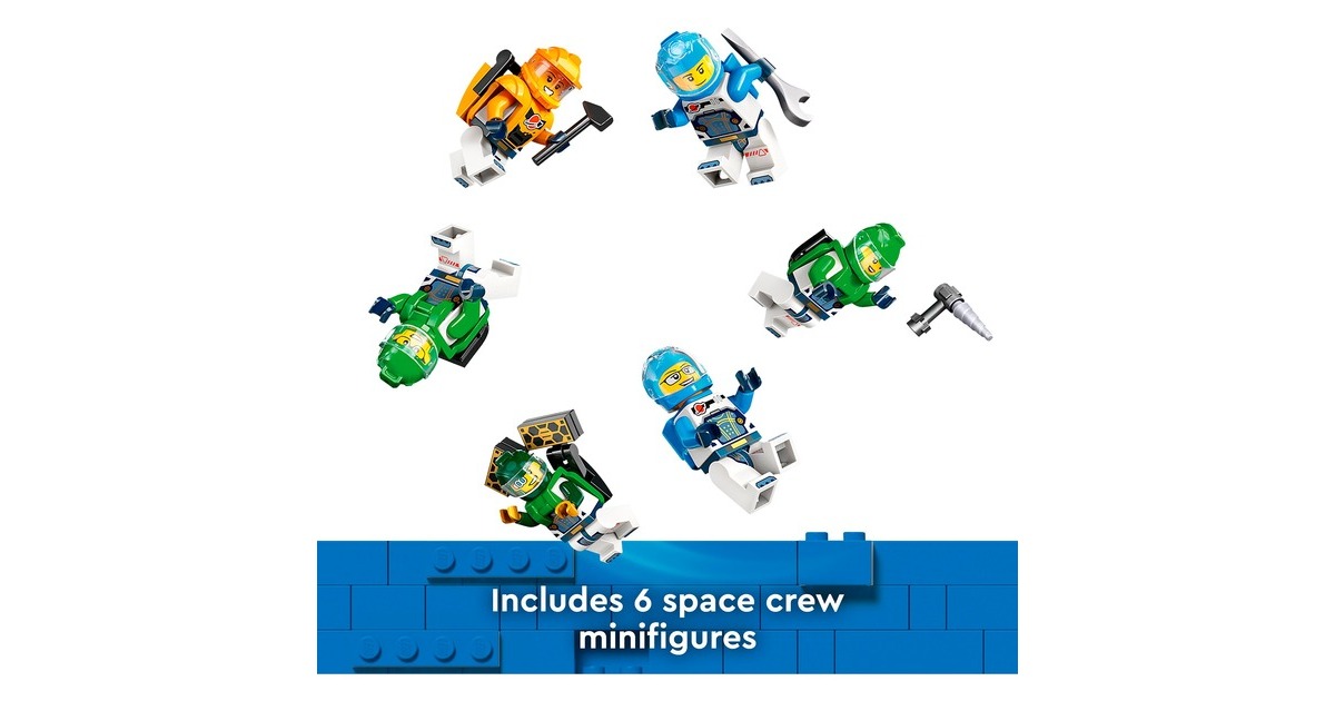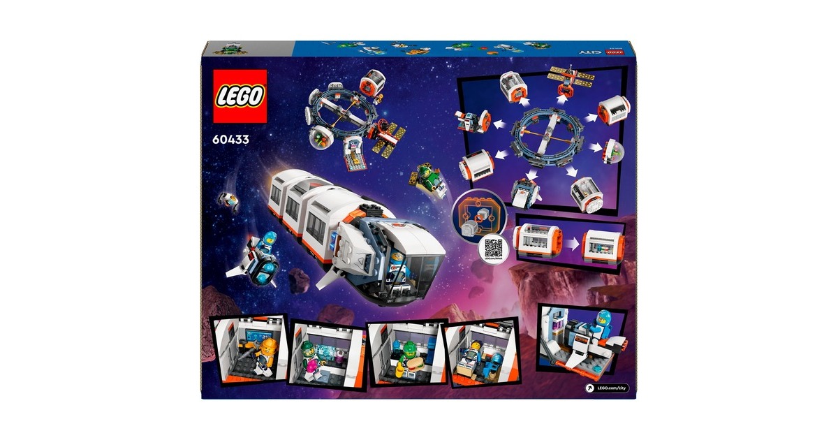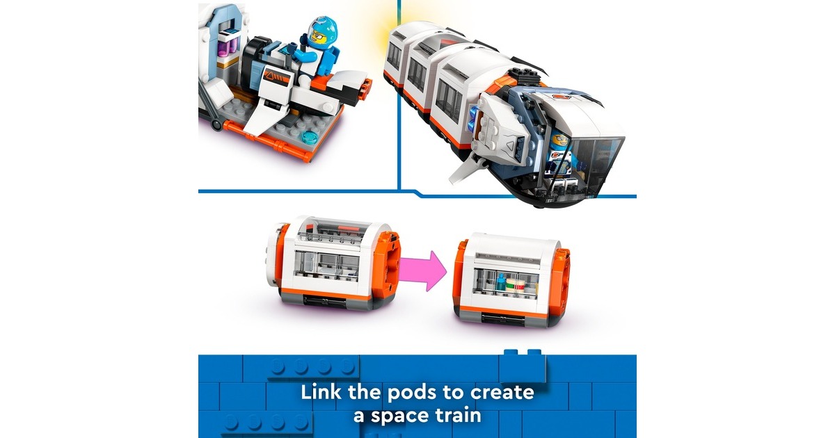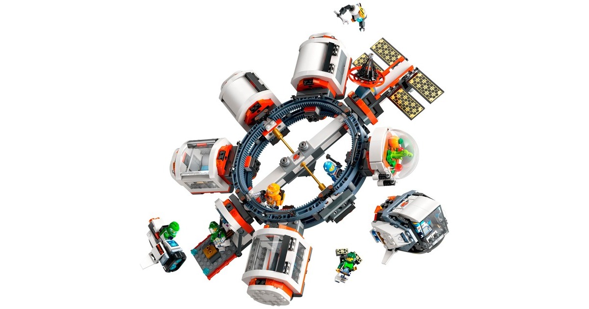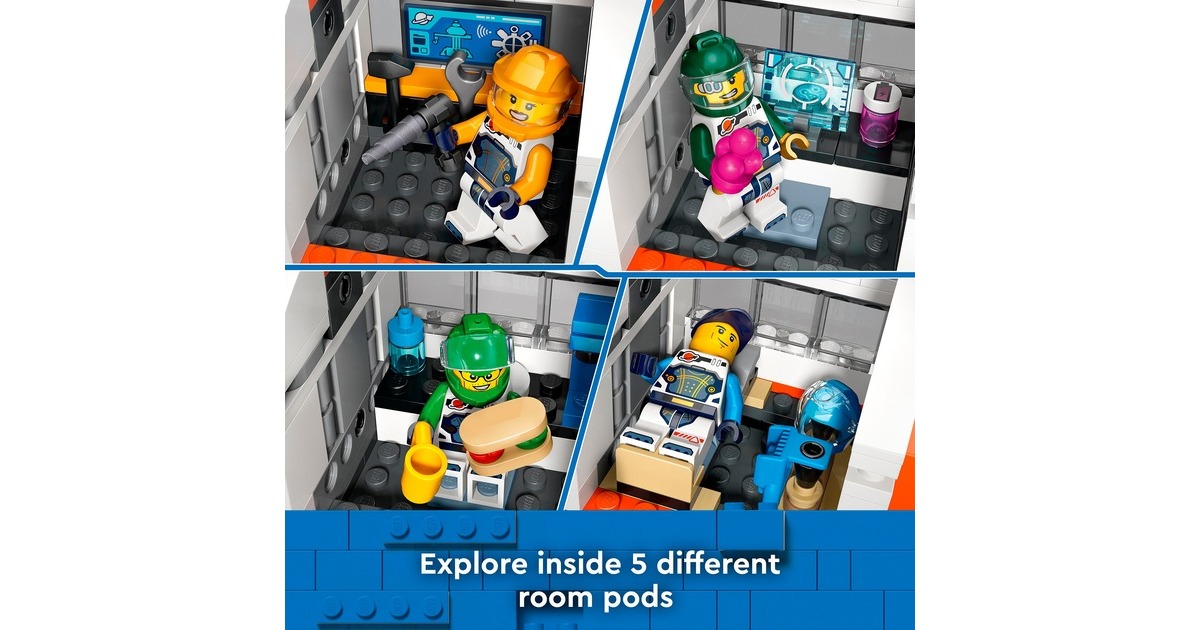 Mit dieser tollen Raumstation erweitert sich die Welt von LEGO City in den Weltraum. Die runde Raumstation ist voll aufgebaut 40 Zentimeter breit und verfügt über 5 Module: Ein Labor, eine Werkstatt, eine Küche, ein Schlafquartier und eine Biokuppel. Die Module können untereinander ausgetauscht und ganz nach Belieben angeordnet werden. Darüber hinaus sind ein Weltraummotorrad, ein Shuttle und ein Satellit in diesem umfangreichen Set mit 1097 LEGO-Teilen enthalten. Die Raumkapselmodule und die Raumfahrzeuge aus diesem Set verfügen über ein Luftschleusensystem, mit dem sie auch an andere kompatible, separat erhältliche LEGO-Weltraummodelle andocken können. 6 Astronauten-Minifiguren bewohnen die Raumstation.Art.-Nr.: 100012357