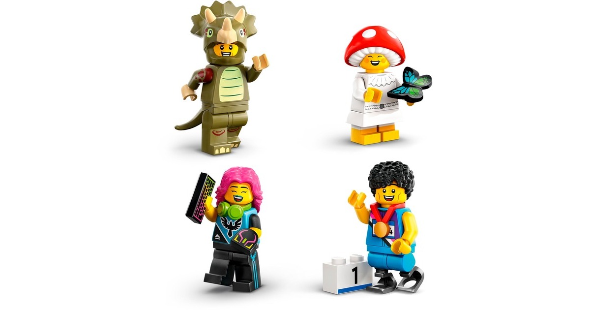 Die LEGO-Minifiguren der Serie 25 sind 12 verschiedene Figuren zum Sammeln - welche geliefert wird, ist eine Überraschung. In jeder Tüte befindet sich eine Figur. Serie 25 umfasst folgende Figuren: Triceratops-Fan, Sprinter, Film Noir Detektiv, Junge mit Zug, Hirte, Vampir-Ritter, Hundefriseurin, Fitness-Trainerin, E-Sports Gamerin, Fliegenpilz, Barbarin und Harpy. Jede Figur wird mit mindestens einem zur Figur passenden Zubehörelement geliefert. Mit den LEGO-Minifiguren lassen sich eigene Geschichten erfinden und beleben: So wird das LEGO-Spielvergnügen noch detaillierter und kreativer.Art.-Nr.: 100012694