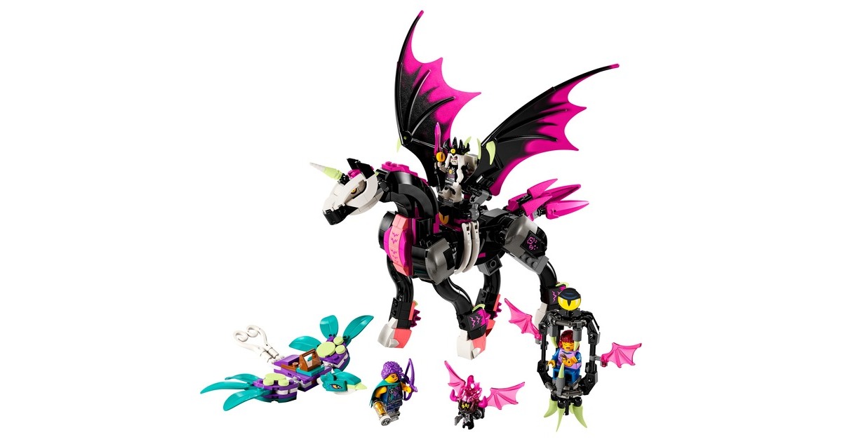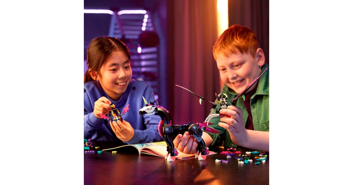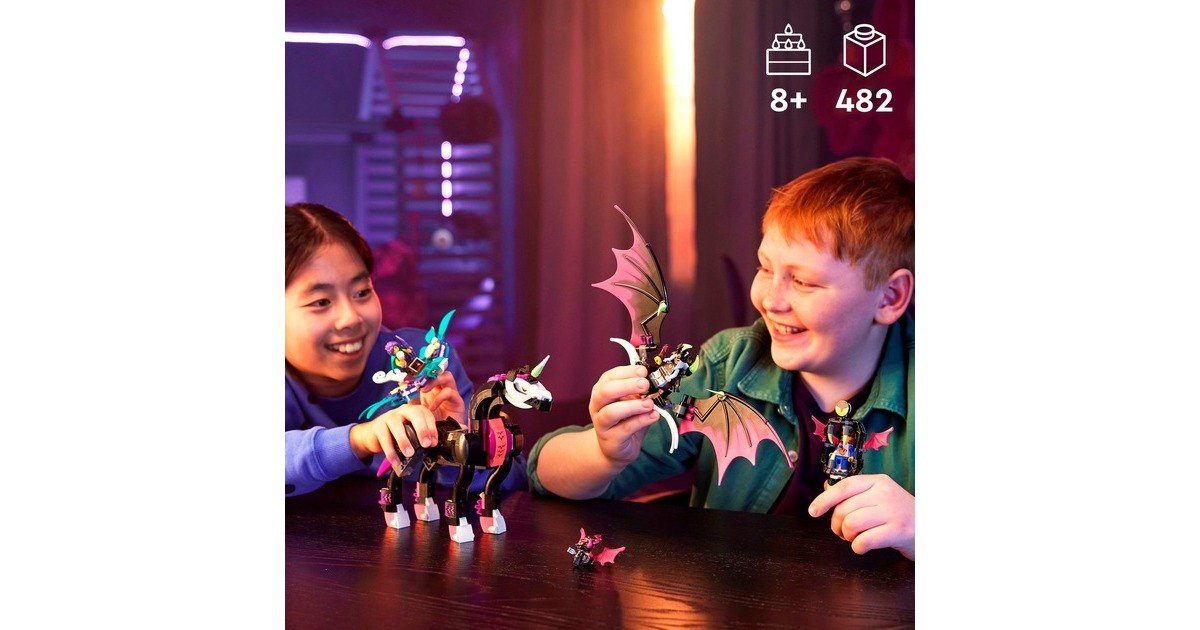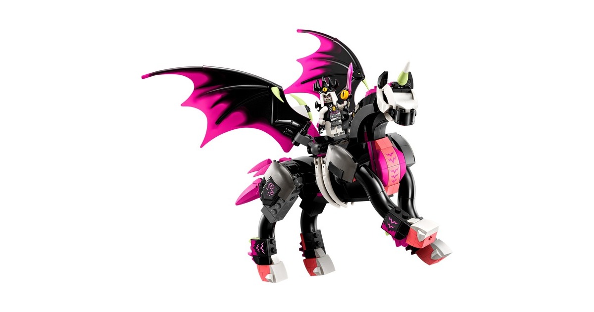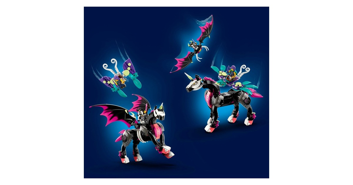 Auf dem Pegasus in die Traumwelt von LEGO DREAMZzz reiten: Nova wurde von dem Albgnom Susan entführt. Doch Zoey ist den beiden schon auf ihrem Pegasus auf den Fersen, um ihre Freundin Nova zu retten! Der Spielzeug-Pegasus kann seinen Kopf, seine Hüfte, seine Hufe und seinen Schwanz bewegen. Sowohl der Thron des Albtraumkönigs als auch Zoeys Vogel können auf dem Rücken das Fabelwesens befestigt werden. Es gibt zwei Baumöglichkeiten: Es kann entweder ein Vogel gebaut werden, der Zoey begleitet oder Zoey kann direkt mit Flügeln ausgestattet werden. Mit dabei sind 3 Minifiguren: Zoey, Nova und der Albtraumkönig sowie die Figur Susan. Art.-Nr.: 1907494