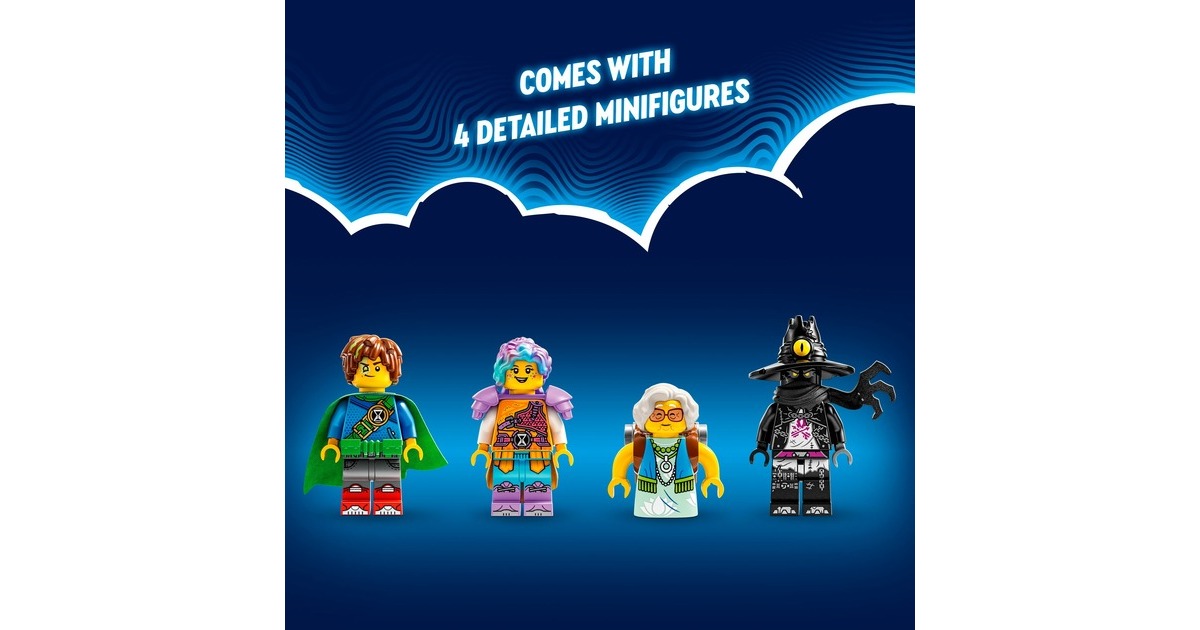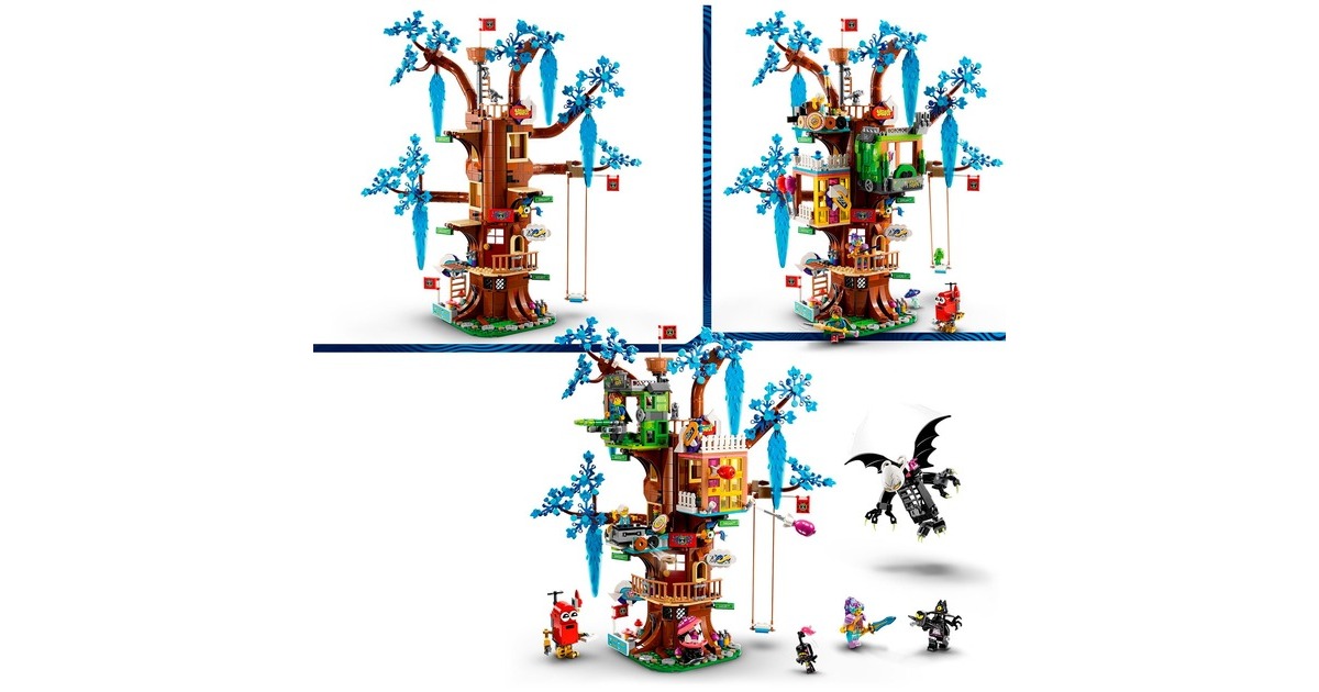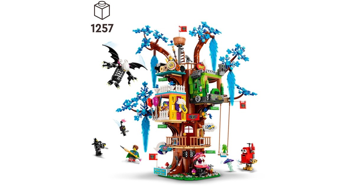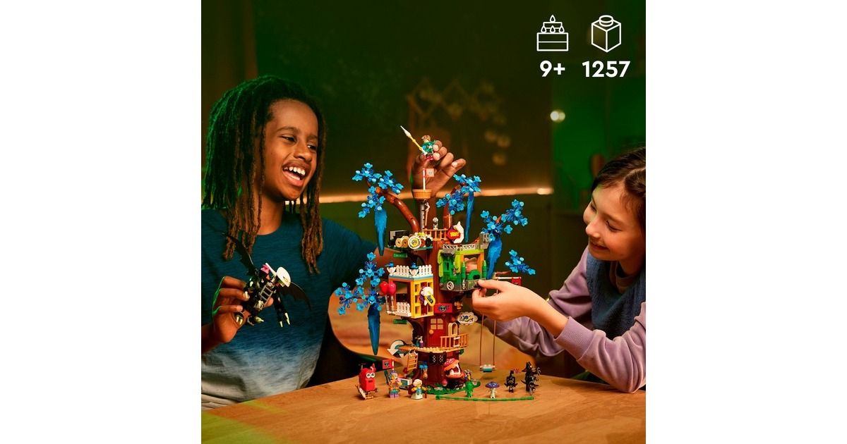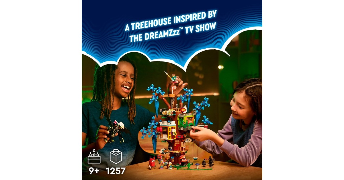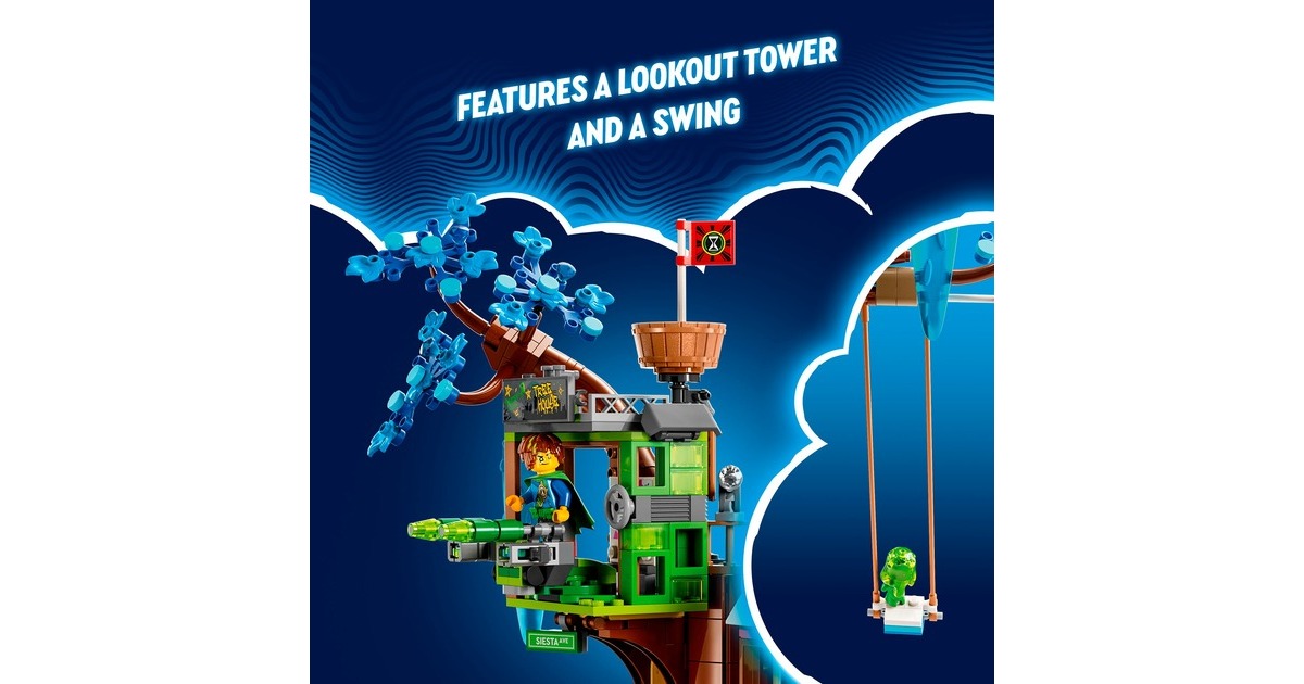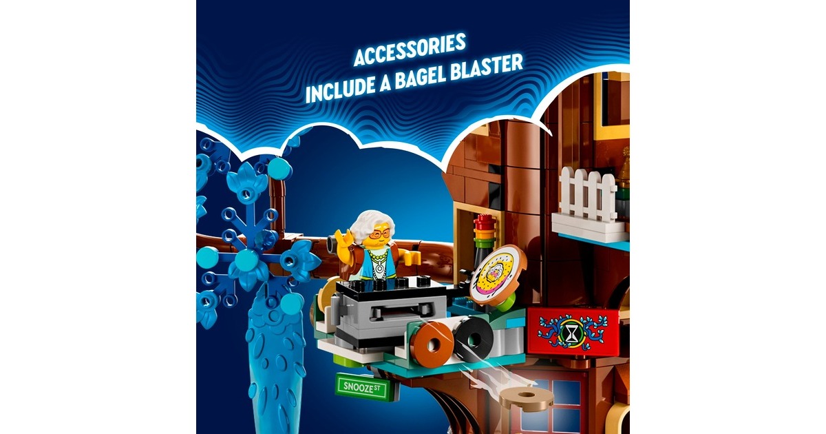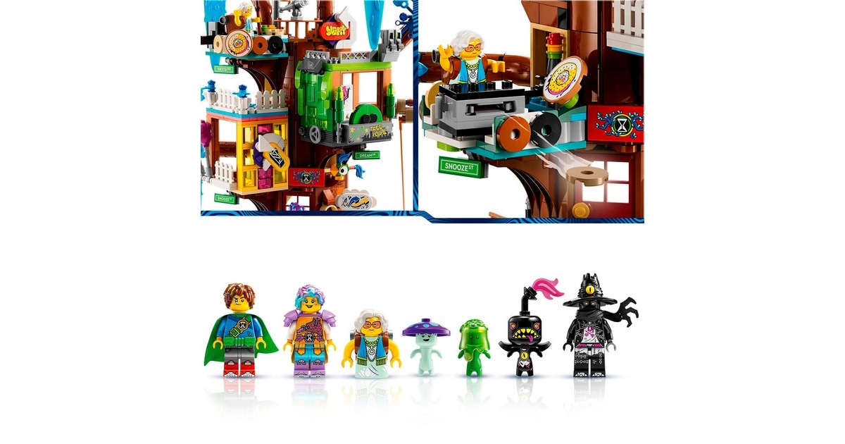 Mit diesem Set aus der LEGO-Serie DREAMZzz entsteht der Treffpunkt der Heldinnen und Helden aus der TV-Serie als Modell mit 1287 Teilen. Es besteht aus 3 Teilen: Mrs. Castillos Küche, dem Kinderzimmer von Izzie und Mateo und einem Wohnzimmer. Außerdem gibt es einen Aussichtsturm und eine faszinierende Schaukel. Das Baumhaus kann zum Partytreff oder zur Festung ausgebaut werden und enthält viel spannendes Zubehör wie Mrs. Castillos Toaster, der sich in einen Bagel-Blaster verwandeln lässt, sowie Mateos Flaschen mit Traumfarbe, die überall im Baumhaus herumliegen. Mit dabei sind 4 Minifiguren: Mrs. Castillo, Izzie, Mateo und der Nachtjäger. Art.-Nr.: 1907507
