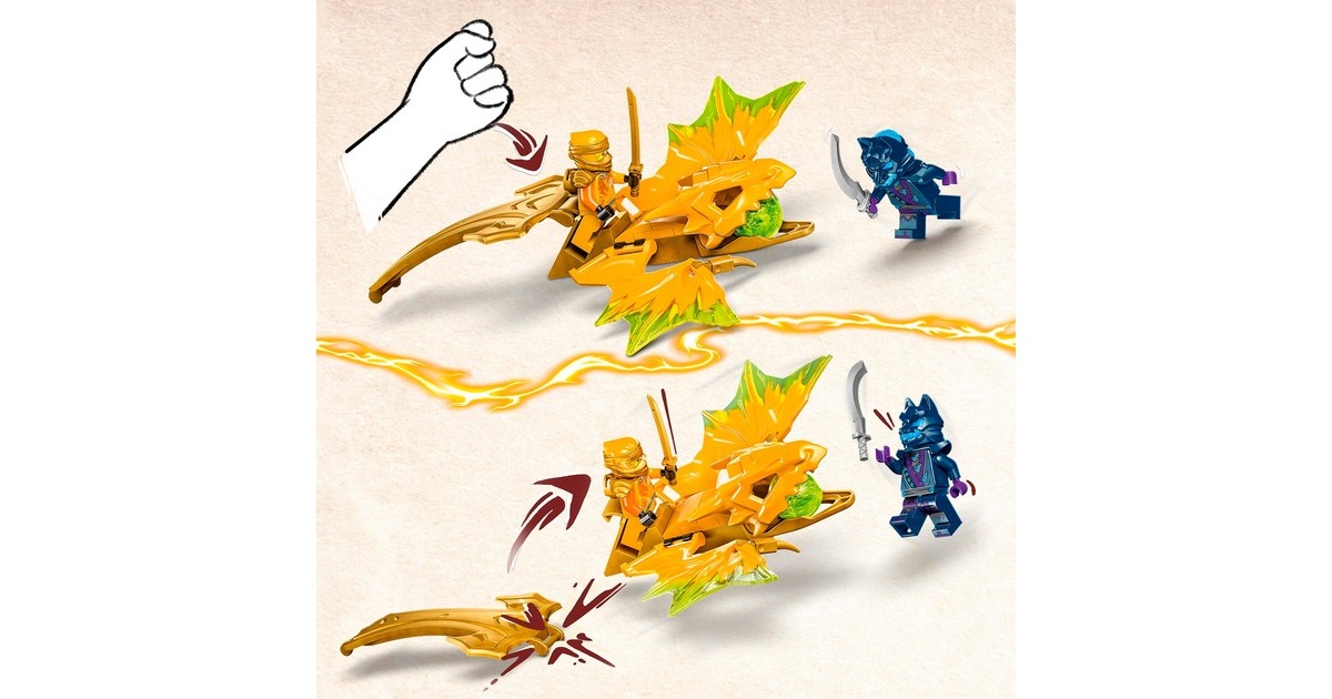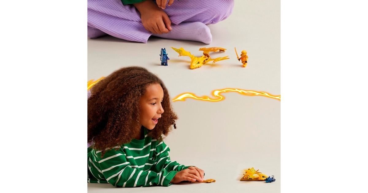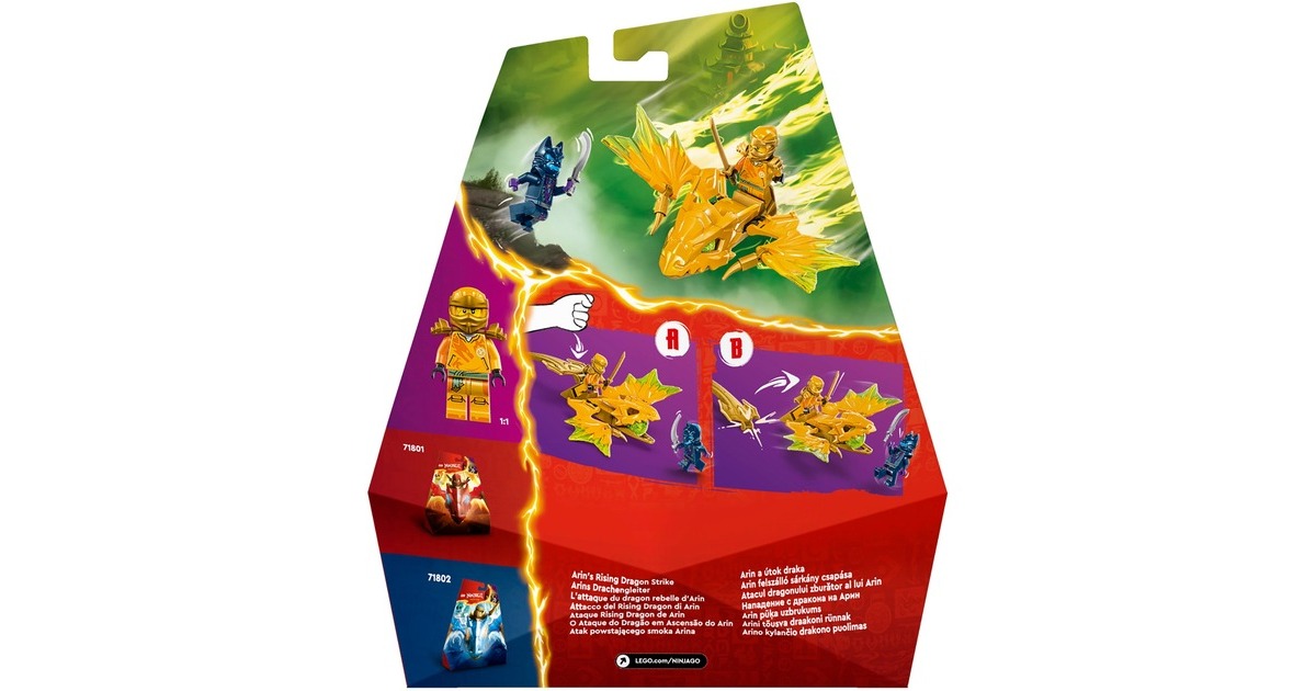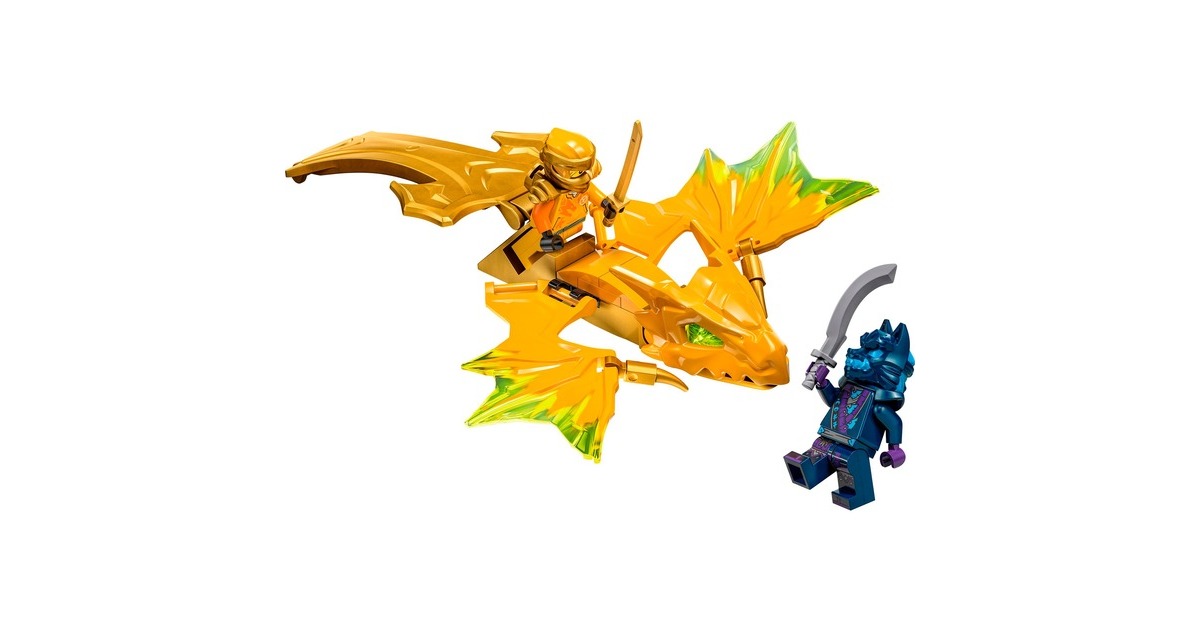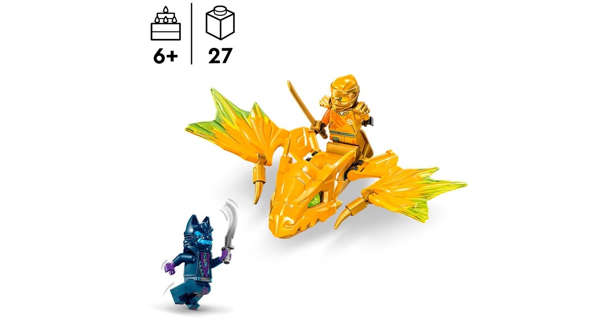 Arin und sein Drachengleiter treten in der 2. Staffel der TV-Serie "Ninjago - Aufstieg der Drachen" auf. Mit diesem LEGO-Set können sie aus LEGO-Steinen gebaut werden - zum Spielen und Ausstellen. Mit dabei sind zwei LEGO Ninjago-Figuren: Arin reitet auf seinem Drachen und schwingt sein Mini-Katana, der Wolfsjäger ist ebenfalls mit einem Schwert ausgerüstet. Die beiden können packende Duelle austragen - der Sieger erhält ein grünes Drachenpower-Element aus dem aufklappbaren Maul des Drachens. Ein kleines LEGO-Set für Fans von LEGO Ninjago, das 27 Teile enthält und für Kinder ab 6 Jahren geeignet ist.Art.-Nr.: 100012508