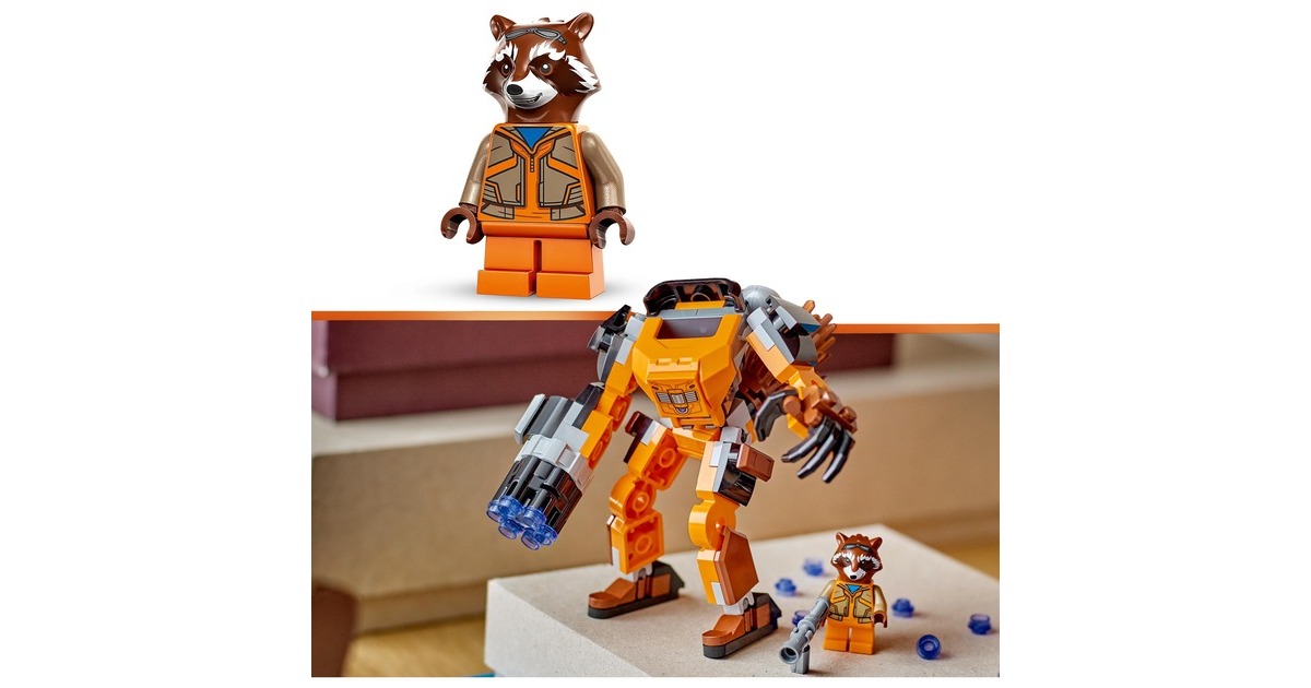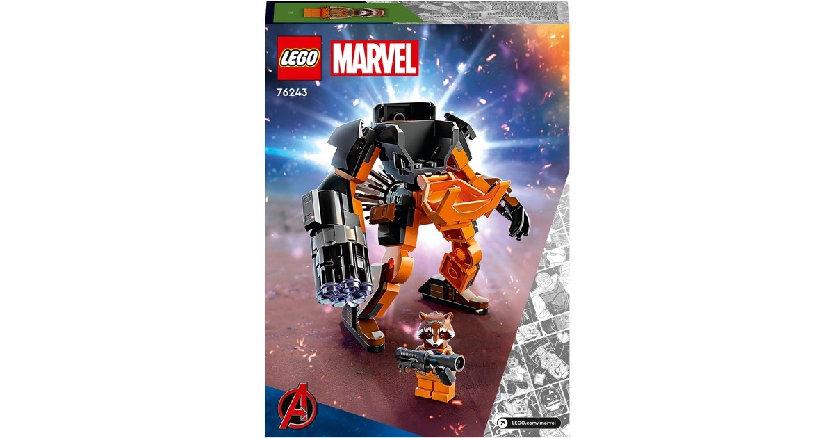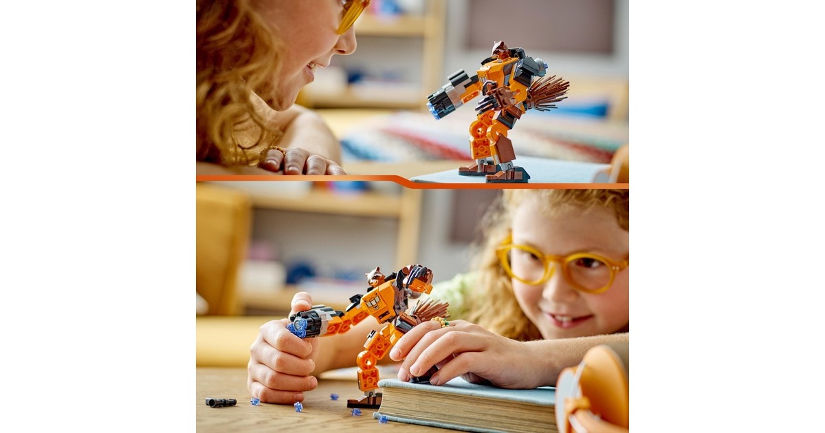 Fans des Films Guardians of the Galaxy aus den Marvel Studios werden das Set LEGO Marvel Rocket Mech lieben. Rocket Racoon nimmt im Cockpit seines gigantischen Mechs Platz und startet in spannende Duelle. In einer Hand hält der Rocket Mech einen 6-schüssigen Blaster. Bewegliche Arme, Beine und Finger bieten unzählige Spiel- und Ausstellungsmöglichkeiten. Wenn Rocket das Cockpit verlässt, kann er einen kleinen Blaster mitnehmen.Art.-Nr.: 1870516
