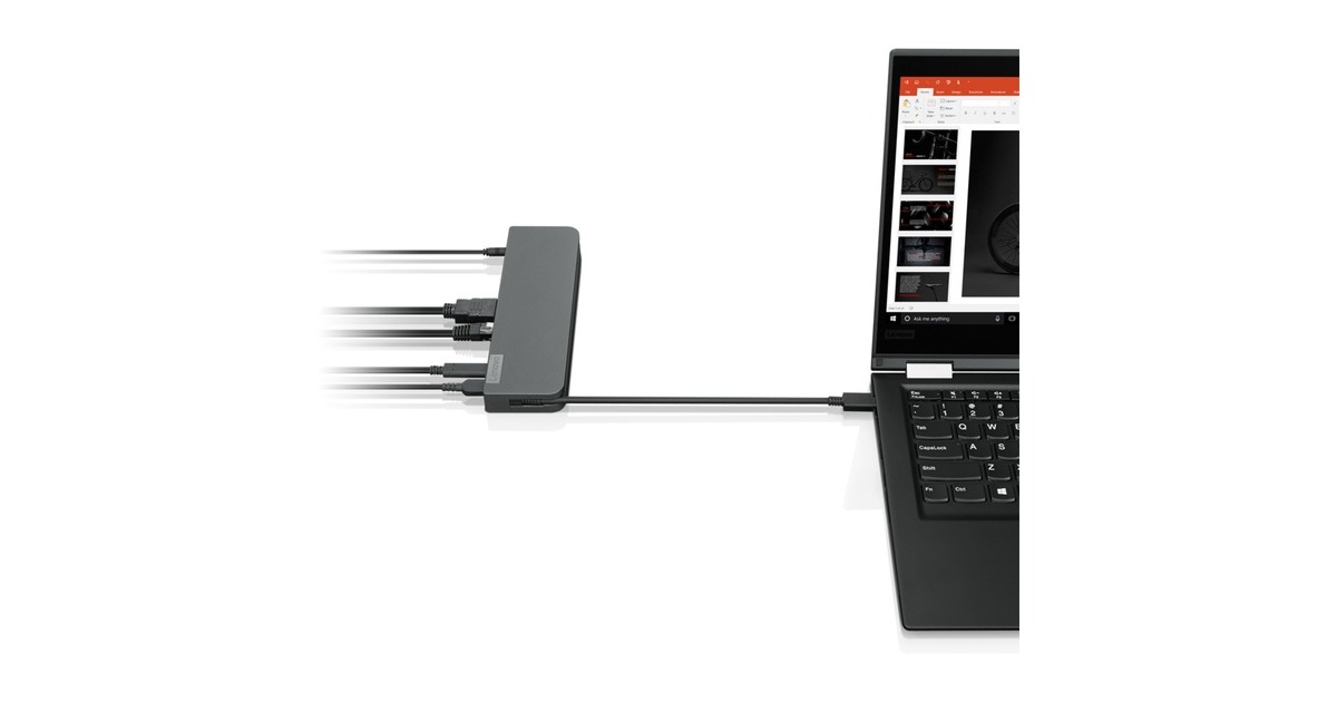 Das Lenovo USB-C Mini Dock eignet sich für zahlreiche Notebooks und erweitert deren Anschlüsse um einen HDMI-Ausgang mit UltraHD/4K Unterstützung, einen Gigabit LAN Port sowie einen VGA-Ausgang und zwei USB-A Ports. Ein weitere USB-C Port unterstützt die Power Delivery Funktion, bei der das angeschlossene Notebook mit bis zu 65 Watt aufgeladen werden kann.Art.-Nr.: 1663012