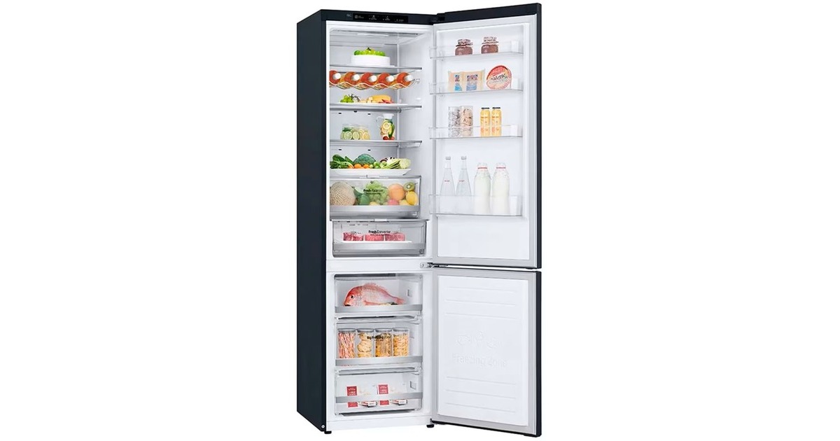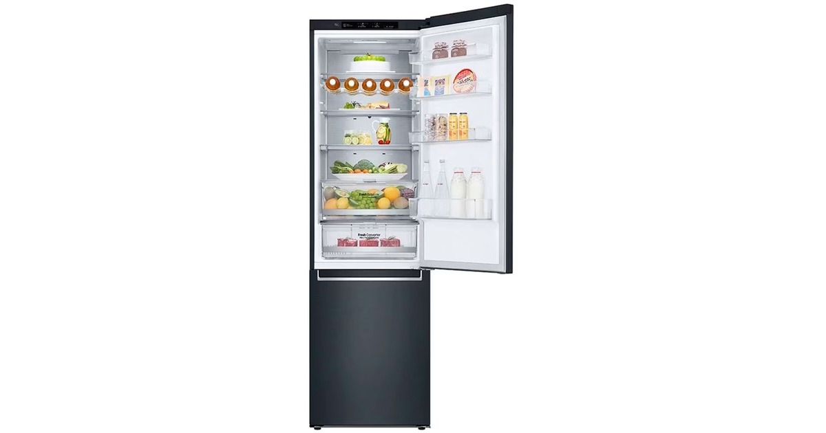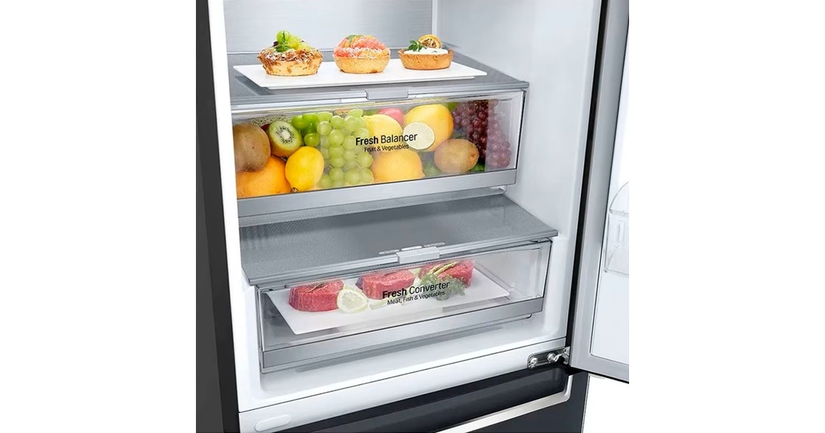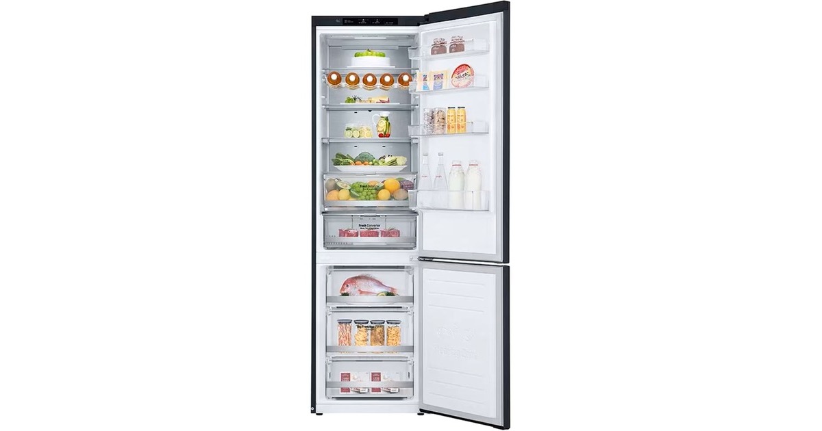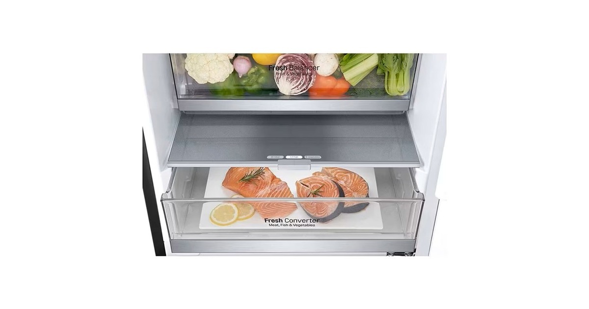 Die Kühl-/Gefrierkombination LG GBB92MCBAP ist mit einem Gesamtnutzinhalt von 384 Litern ideal für den mittleren bis größeren Haushalt geeignet und überzeugt mit zahlreichen Features. Im 277 Liter umfassenden Kühlteil mit Multi-Airflow haben Speisen und Getränke auf vier Abstellflächen aus Sicherheitsglas, davon ein variabler Glaszwischenboden, auf einem Flaschengitter sowie in vier Türfächern viel Platz, um übersichtlich gelagert zu werden. Das FRESHConverter Fach ist ein nach Bedarf regelbares Fach für die längere Lagerung von Fleisch, Fisch oder Gemüse und das FRESHBalancer Fach ist mit einem Wahlschalter ausgestattet, um je nach Bedarf die optimale Luftfeuchtigkeit für Obst und Gemüse zu regulieren und so für längere Frische zu sorgen. Das Gefrierteil des GBB92MCBAP mit Total NoFrost-Technologie und SuperGefrieren-Funktion umfasst 107 Liter und stellt drei Gefrierschubladen für Tiefkühlkost zur Verfügung. DoorCooling+ stabilisiert die Innentemperatur und kühlt schneller und gleichmäßiger als herkömmliche Kühlsysteme und LINEARCooling reduziert den Temperaturunterschied im Kühlschrank auf ±0,5°C, wodurch Lebensmittel länger frisch bleiben. Mit einem Stromverbrauch von 110 kWh im Jahr ist die GBB92MCBAP in die Energieeffizienzklasse A eingestuft.Art.-Nr.: 100041835