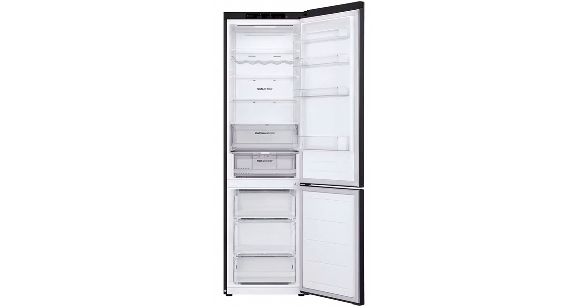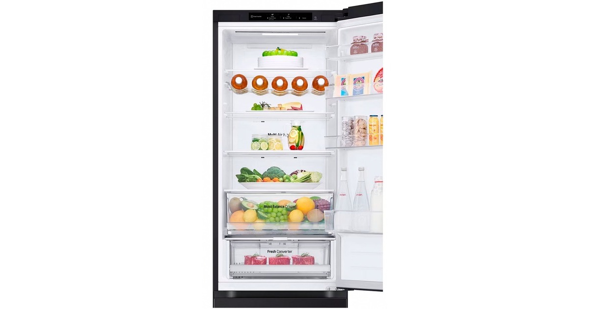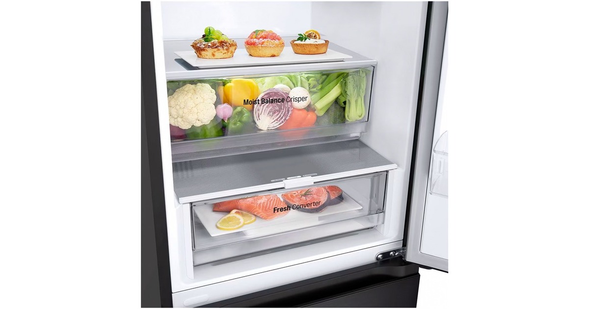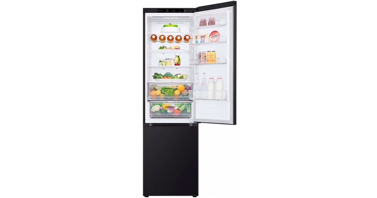 Der LG GBV3200CEP überzeugt als Kühl-/Gefrierkombination in matt-schwarzem Design und hoher Funktionalität. Mit Energieeffizienzklasse C und einem Verbrauch von nur 174 kWh/Jahr spart er Energie. 387 Liter Nutzinhalt, unterteilt in ein 277-Liter-Kühlfach und ein 110-Liter-Gefrierfach, sorgen für umfangreichen Stauraum. Die vier Sicherheitsglasablagen und zwei Gemüseschubladen inklusive FRESHConverter bieten Ordnung und Frische. Dank No-Frost-Technologie entfällt das Abtauen. Das MultiAirflow-System, LINEARCooling und DoorCooling+ bieten konstante Temperaturen und effiziente Kühlung. Ein innenliegendes LED-Display und der leise Smart Inverter Kompressor runden das Profil ab.Art.-Nr.: 100046526