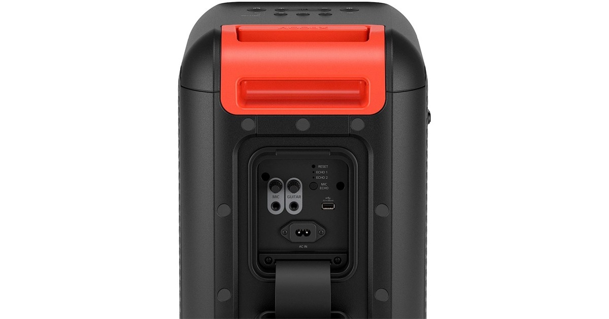 Wireless Party Link, dynamische Pixel-Beleuchtung, Multi-Color-Ringbeleuchtung, Stroboskoplicht, XBOOM App, IPX4-Schutzklasse, Sicherheitsschloss, Teleskopgriff und Räder |