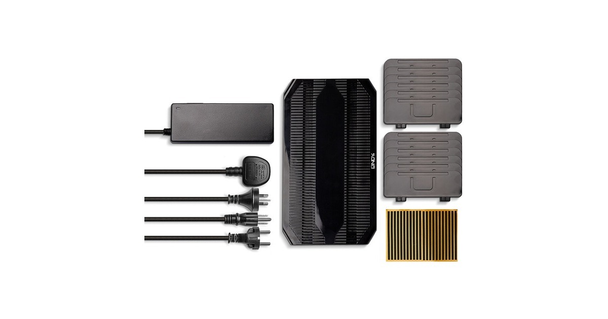 11x Trennplatten, 12 V 8 A Netzteil mit 5.5/3.5 mm DC-Hohlstecker und 4 länderspezifischen Netzkabeln (EU/US/UK/AUS an IEC C5), LINDY Handbuch |