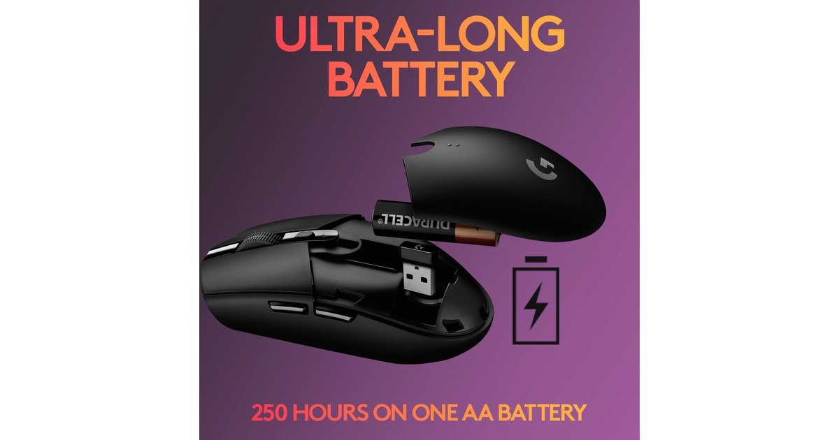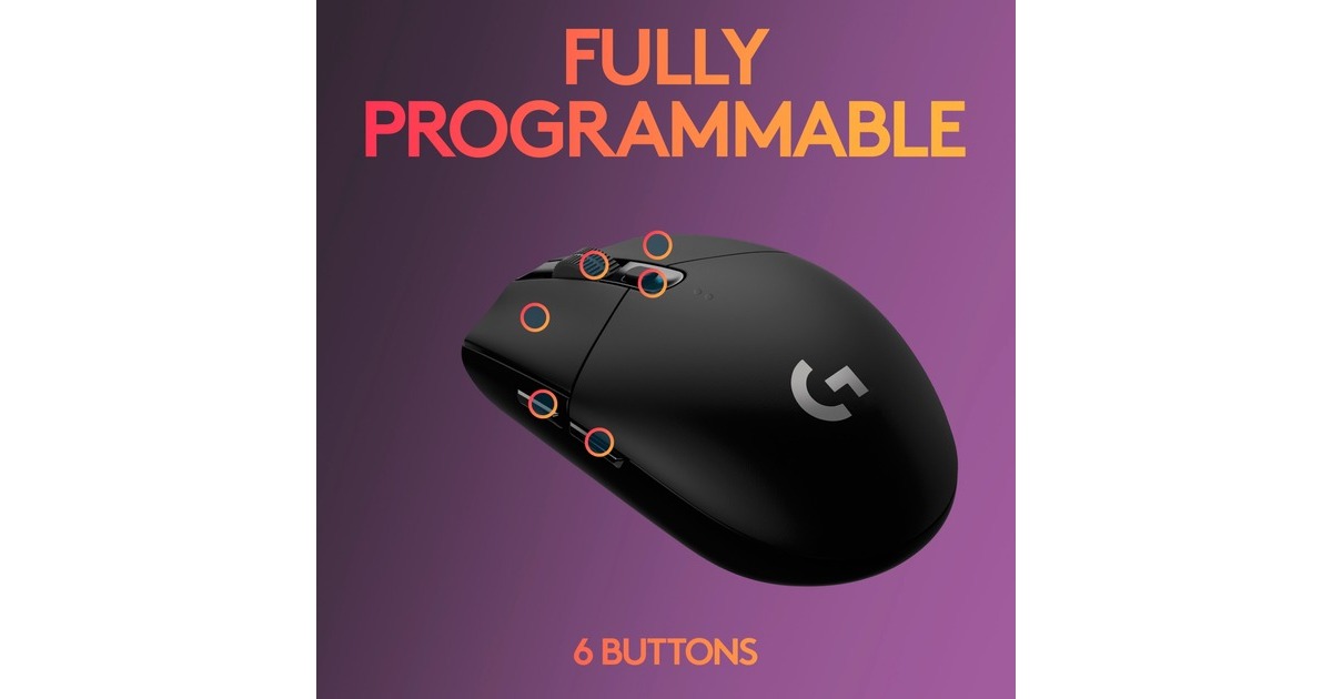 Die kabellose G305 LIGHTSPEED Gaming-Maus von Logitech ist ausgestattet mit einem HERO-Sensor der nächsten Generation. Sie bietet eine Leistung von 12.000 DPI und eine kabellose LIGHTSPEED-Verbindung mit einer superschnellen Signalrate von 1 Millisekunde. Dazu kommen die lange Batterielaufzeit von 250 Spielstunden mit einer Batterie vom Typ AA und die Anzeigeleuchte, die signalisiert, wenn sich die Batterieladung dem Ende zuneigt. Dank des effizienten mechanischen Designs wiegt die G305 Gaming-Maus nur 99 Gramm, was für hohe Manövrierfähigkeit sorgt. Die robuste, kompakte Form und das integrierte Aufbewahrungsfach für den Nano-Empfänger machen die G305 zu einem großartigen Begleiter für unterwegs, der mit 6 programmierbaren Tasten immer bereit zum Spielen ist. Insgesamt überzeugt diese kabellose LIGHTSPEED Maus durch ihr hervorragendes Preis-Leistungs-Verhältnis.Art.-Nr.: 1473396