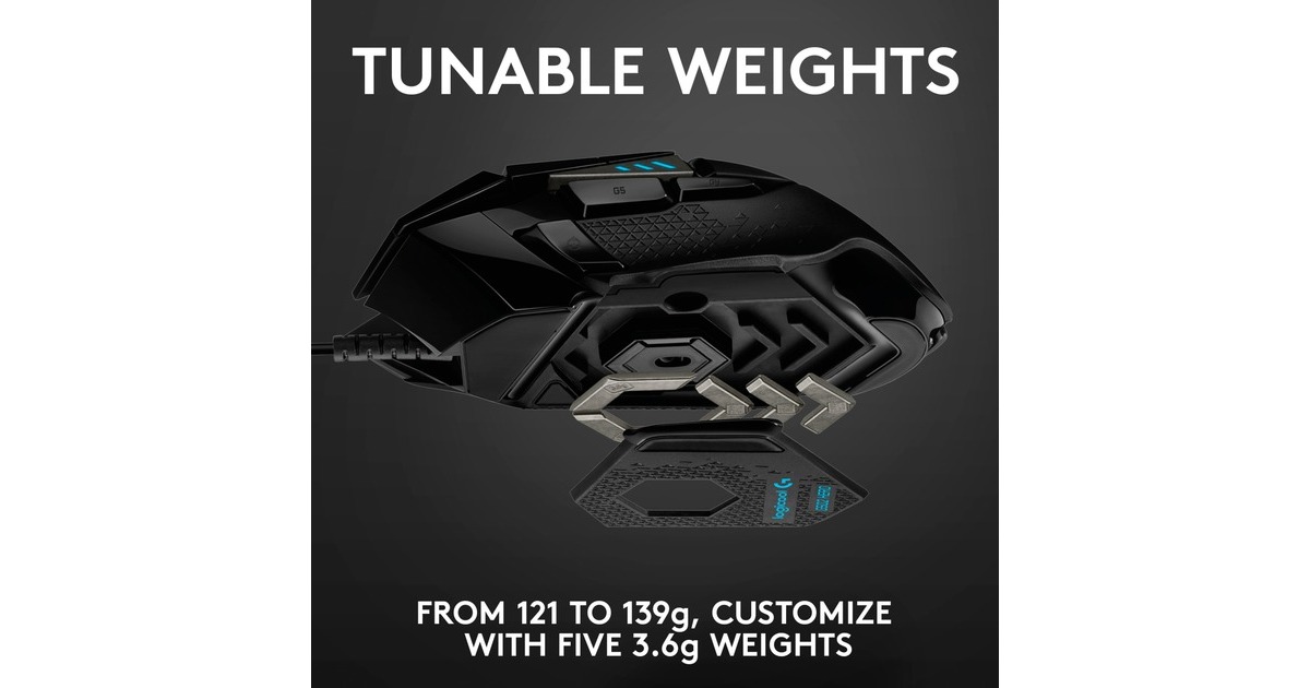 | Besonderheiten | 5 Gewichte mit 3,6 g zum Anpassen von Gewicht und Balance, Auflösung einstellbar von 100 bis 25.000 dpi, integrierter Profilspeicher, LIGHTSYNC RGB-Beleuchtung |