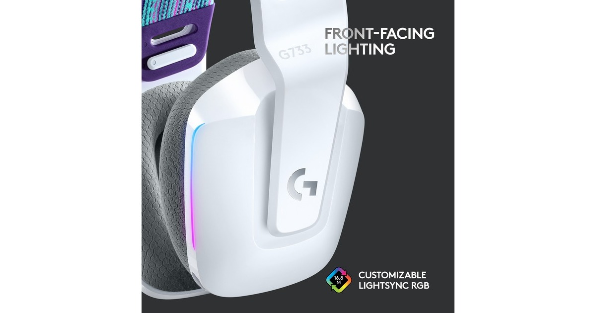 Mit dem G733 LIGHTSPEED hat man eine absolute Freiheit mit einer Reichweite von bis zu 20 m und kabelloser LIGHTSPEED-Audioübertragung. Spiele mit bis zu 20 Stunden Akkulaufzeit. Personalisiere deine Headset-Beleuchtung mit dem gesamten Spektrum von 16,8 Millionen Farben. Spiele mit farbiger, frontal ausgerichteter Zwei-Zonen-RGB-Beleuchtung und wähle aus voreingestellten Animationen oder erstelle deine eigenen mit der G HUB-Software. Personalisiere deine Headset-Beleuchtung mit dem gesamten Spektrum von 16,8 Millionen Farben. Spiele mit farbiger, frontal ausgerichteter Zwei-Zonen-RGB-Beleuchtung und wähle aus voreingestellten Animationen oder erstelle deine eigenen mit der G HUB-Software. Art.-Nr.: 1666416