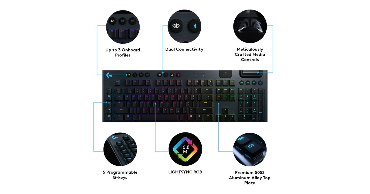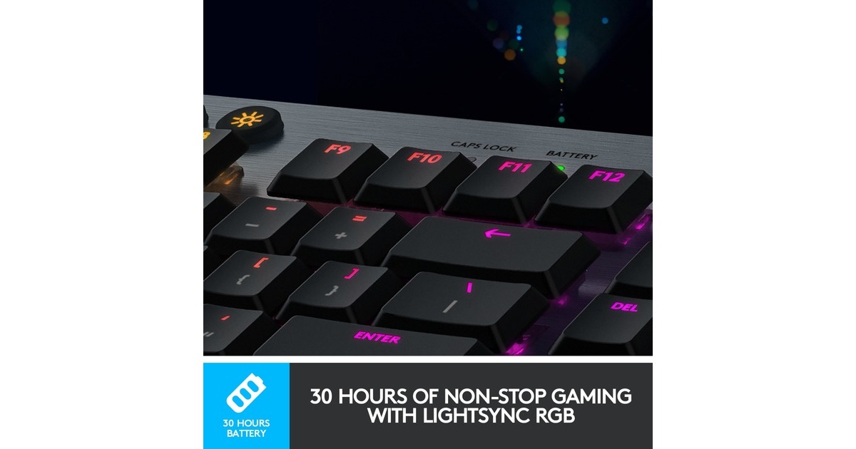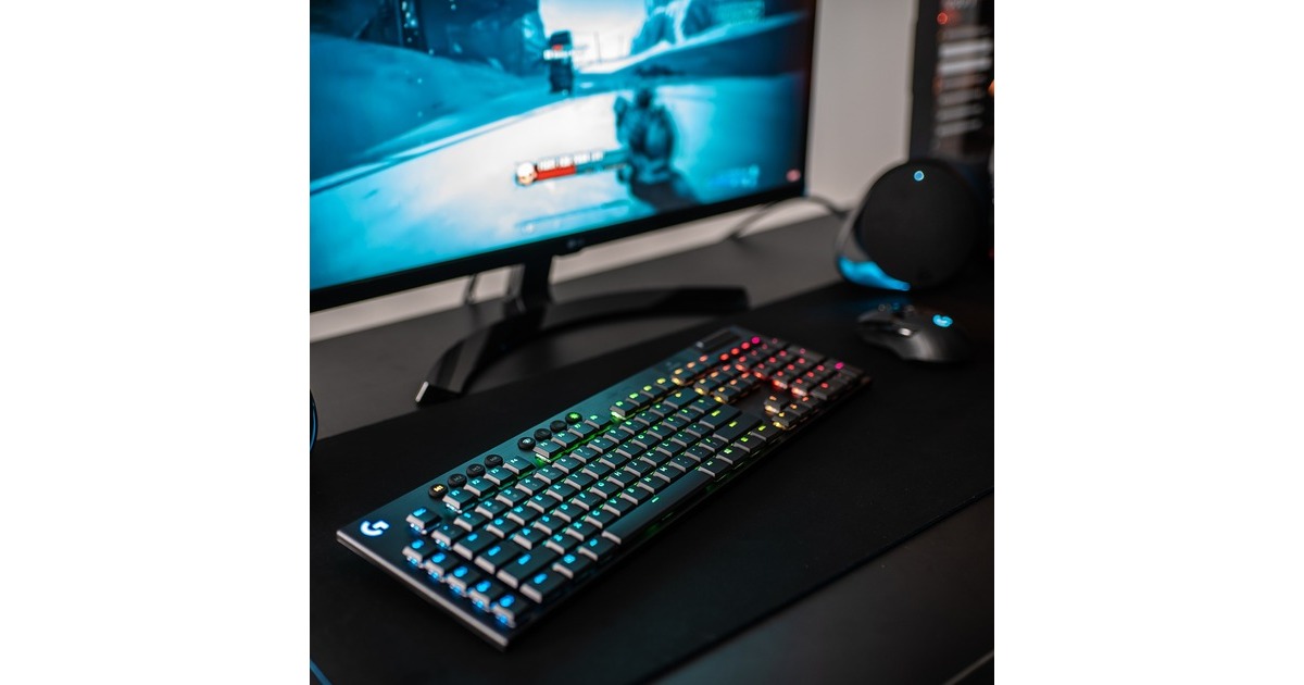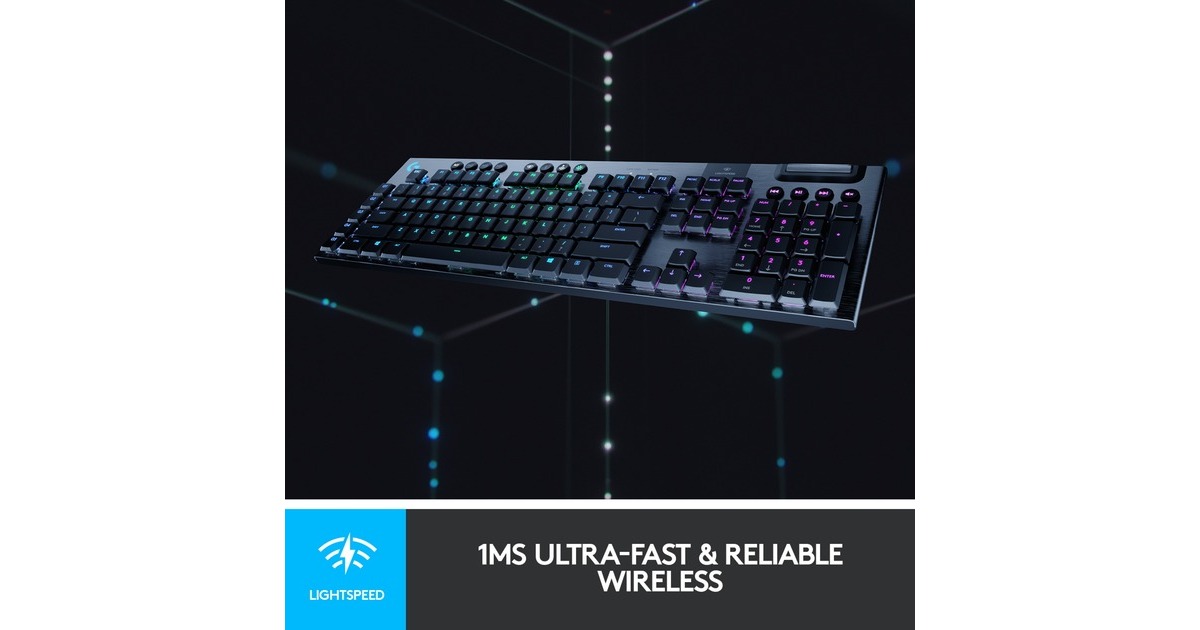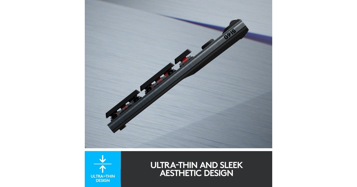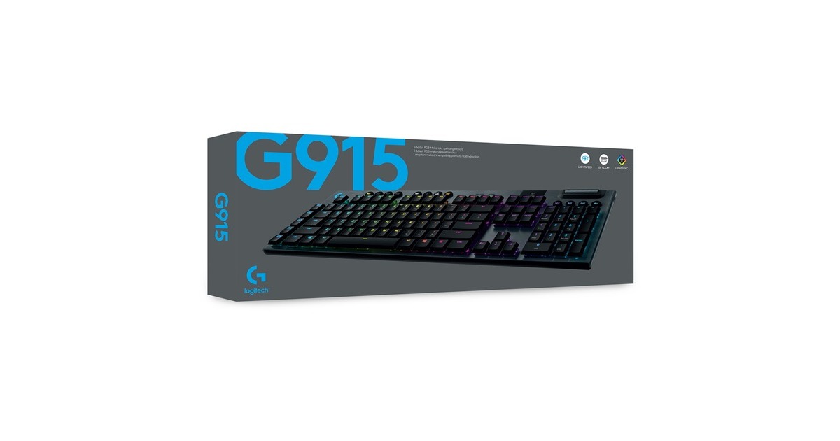 Die Gaming-Tastatur Logitech G915 bietet kabelloses LIGHTSPEED in professioneller Qualität für superschnelle Leistung mit 1 Millisekunde. Sie ist ebenso voll einsatzfähig, wenn sie über USB angeschlossen ist, sodass man gleichzeitig laden und spielen kann. Zudem kann jederzeit schnell und einfach zwischen kabellosem LIGHTSPEED über USB-Empfänger und Bluetooth gewechselt werden. Die hochleistungsfähigen, flachen, mechanischen GL-Switches sind nur halb so hoch sind wie herkömmliche Switches, bieten aber dieselbe Geschwindigkeit, Präzision und Leistung. Die schlanke und ausgereifte G915 liefert Spitzenleistung mit allen Funktionen, die für eine totale Kontrolle nötig sind - beispielsweise programmierbare G-Tasten und integrierte Profile. Die intelligente LIGHTSYNC RGB Technologie sorgt dank anpassbarer Beleuchtung für jede Taste in ca. 16,8 Millionen Farben für den individuellen Style, sodass die G915 in jede Gaming-Umgebung passt.Art.-Nr.: 1573785