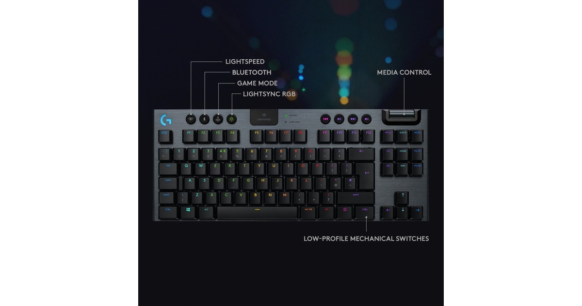 Die Gaming-Tastatur Logitech G915 TKL bietet kabelloses LIGHTSPEED in professioneller Qualität für superschnelle Leistung mit 1 Millisekunde. Sie ist ebenso voll einsatzfähig, wenn sie über USB angeschlossen ist, sodass man gleichzeitig laden und spielen kann. Zudem kann jederzeit schnell und einfach zwischen kabellosem LIGHTSPEED über USB-Empfänger und Bluetooth gewechselt werden. Die hochleistungsfähigen, flachen, mechanischen GL-Switches sind nur halb so hoch sind wie herkömmliche Switches, bieten aber dieselbe Geschwindigkeit, Präzision und Leistung. Die schlanke und ausgereifte G915 TKL liefert Spitzenleistung mit allen Funktionen, die für eine totale Kontrolle nötig sind - beispielsweise programmierbare Tasten und integrierte Profile. Die intelligente LIGHTSYNC RGB Technologie sorgt dank anpassbarer Beleuchtung für jede Taste in ca. 16,8 Millionen Farben für den individuellen Style, sodass die G915 TKL in jede Gaming-Umgebung passt.Art.-Nr.: 1649570