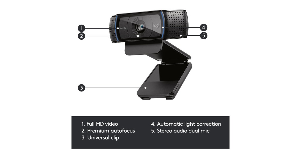 Skype in Full HD (1080p und 720p), Logitech Fluid Crystal-Technologie, Realistischer Stereoklang, Stereo-Mikrofon |