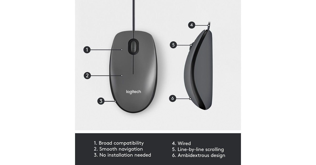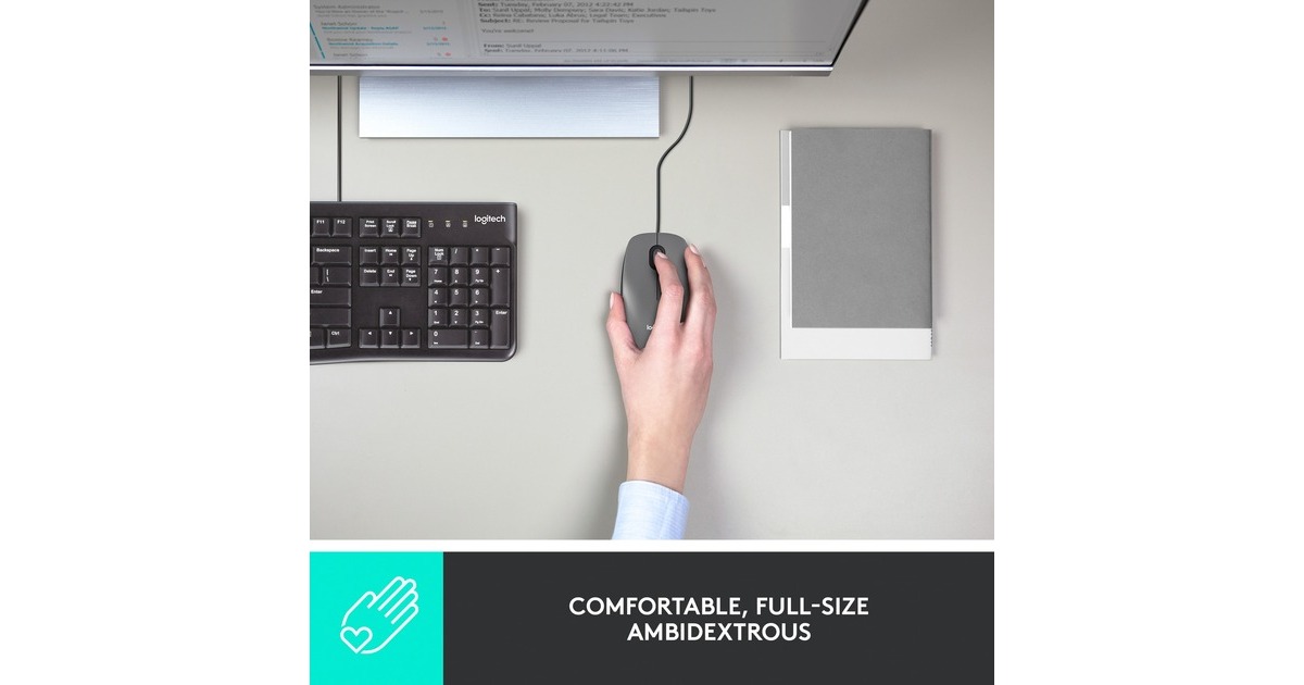 Komfortabel, benutzerfreundlich und immer einsatzbereit. Die Logitech M100 ist eine beidhändig bedienbare Maus in Standardgröße und erfüllt alle Anforderungen ohne viel Aufhebens – einfach das Kabel in den USB-Anschluss einstecken und loslegen. Dank des präzisen, zeilenweisen Bildlauf erledigt man täglichen Aufgaben reibungslos und einfach. Die M100 funktioniert mit Windows, macOS und Linux und ist „Funktioniert mit Chromebook“-zertifiziert.Art.-Nr.: 1905868