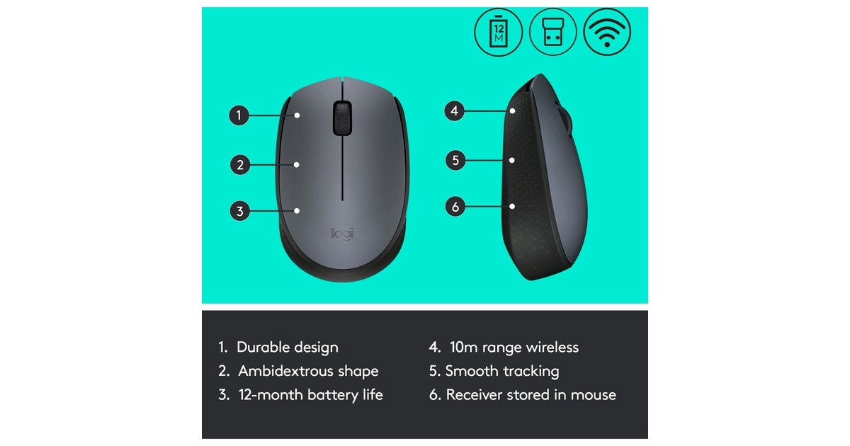 Die Logitech M170 Wireless Mouse besitzt ein ergonomisches Design, welches eine optimale Bedienung für Links- und Rechtshänder erlaubt. Die energieeffiziente Technologie ermöglicht eine längere Lebensdauer der Batterie und der Sensor der M170 Wireless bietet eine flüssige und präzise Abtastung. Der kompakte Nano-Empfänger mit 2,4-GHz lässt sich bequem in der Maus verstauen und überall mithinnehmen.Art.-Nr.: 1255705