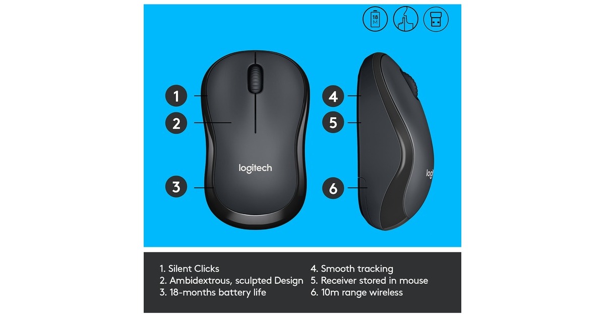 Mit der Logitech M220 Silent Maus verrichtet man sein Arbeit, ohne dabei auch nur einen Ton zu verpassen oder das Umfeld zu stören. Mit leisen Mäusen genießt man das gleiche Klickgefühl bei um über 90 % reduzierten Klickgeräuschen. Die strapazierfähigen, leistungsstarken Füße gleiten geräuschlos über den Schreibtisch. Das leichtgängige Scrollrad perfektioniert das Mauserlebnis. Leise Mäuse eliminieren störende Geräusche und tragen damit zur Gesundheit und Produktivität bei.Art.-Nr.: 1294830