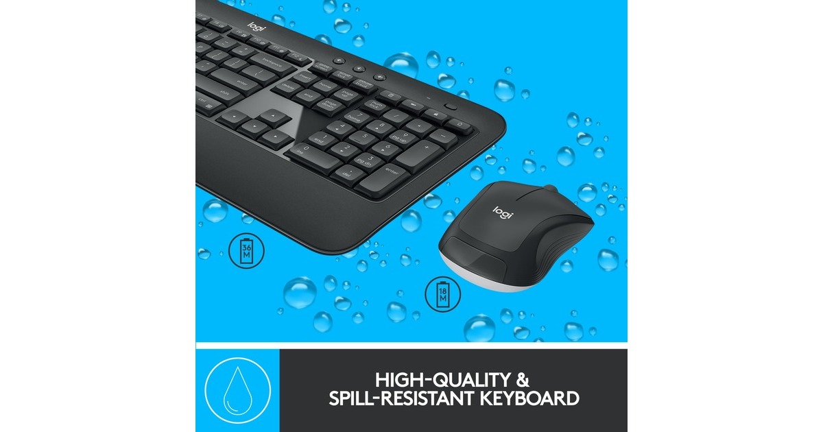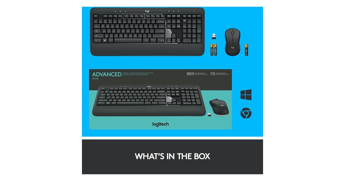 Das Logitech MK540 Advanced Dsktop-Set wurde speziell für Präzision, Bedienkomfort und Zuverlässigkeit entwickelt und bietet einem sofort ein vertrautes Benutzererlebnis. Die Tastatur in Standardgröße ist optimiert für erhöhte Präzision und reduzierte Tippgeräusche. Die Handballenauflage und die verstellbaren ausklappbaren Füße sorgen für Bedienkomfort auch bei langer Arbeitsdauer. Die geschwungen geformte Maus passt sich an jede Hand an. Tastatur und Maus müssen nur mit dem winzigen USB-Empfänger mit Logitech Unifying-Technologie eingesteckt werden und schon kann man loslegen. Man profitiert von einer zuverlässigen, verschlüsselten, kabellosen Verbindung von bis zu 10 m - praktisch ohne Verzögerungen oder Ausfälle. Die Tastatur benötigt circa 36 Monate lang keine neuen Batterien und die Maus hat genügend Energie für 18 Monate.Art.-Nr.: 1428350