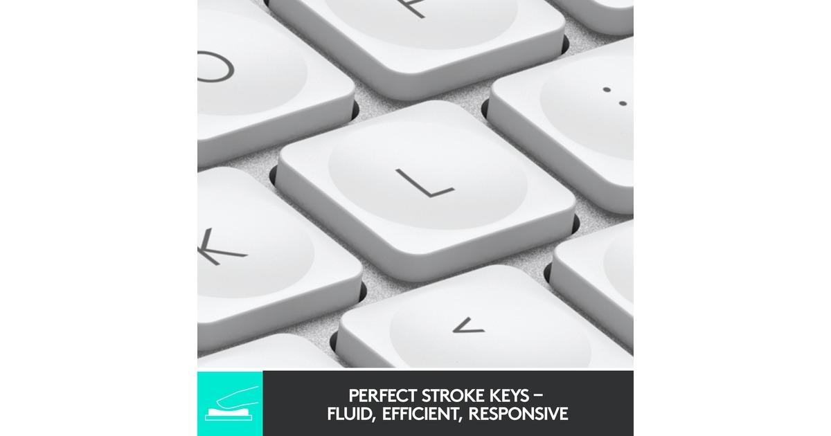 Perfektes Tippen mit Smart Keys, Hand-Näherungssensoren zum Aktivieren der Hintergrundbeleuchtung, Umgebungsbeleuchtungs-Sensoren zum Anpassen der Hintergrundbeleuchtung, Verbinden mit bis zu 3 Geräten und einfaches Umschalten |