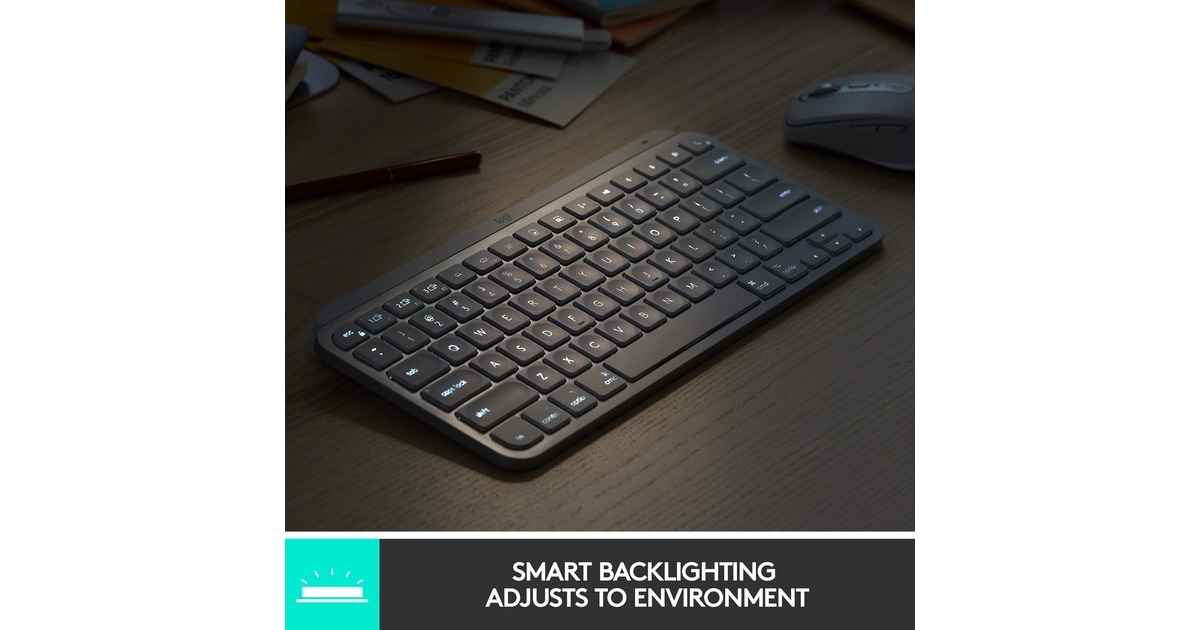 Perfektes Tippen mit Smart Keys, Hand-Näherungssensoren zum Aktivieren der Hintergrundbeleuchtung, Umgebungsbeleuchtungs-Sensoren zum Anpassen der Hintergrundbeleuchtung, Verbinden mit bis zu 3 Geräten und einfaches Umschalten |