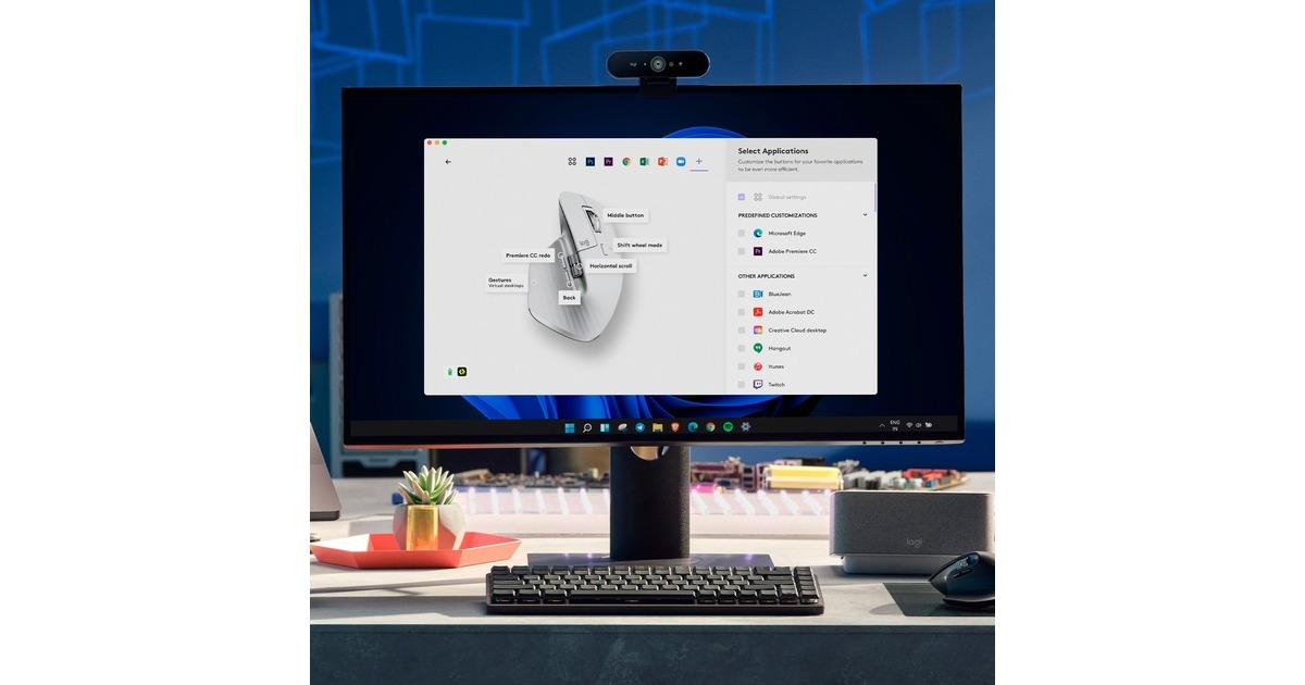 7 Tasten (Links-/Rechtsklick, zurück/vorwärts, App-Wechsel, Rad-Moduswechsel, Mittelklick), Scrollrad mit SmartShift, Daumenrad, Gestentaste |