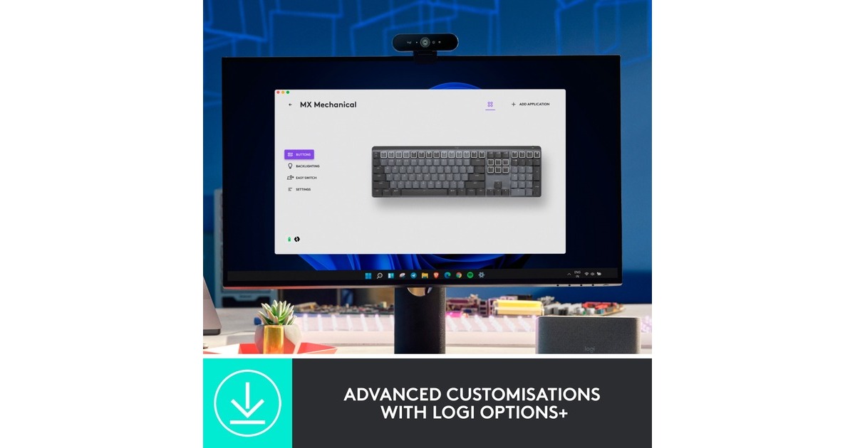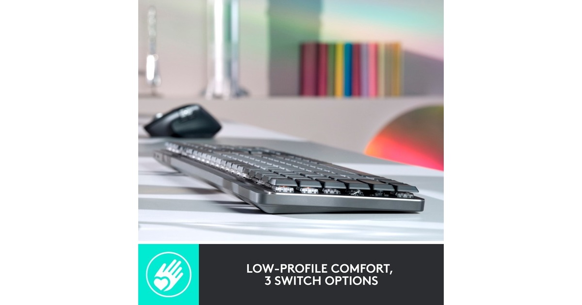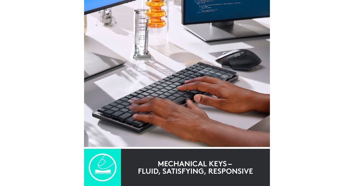 Die Logitech MX Mechanical ist eine Tastatur in Standardgröße mit außergewöhnlicher Haptik, Präzision und Leistung. Ihre flachen mechanischen Tasten bieten ein angenehmes Feedback bei jedem Anschlag, wobei die Finger mühelos über ihre matte Oberfläche gleiten. Die zweifarbigen Tastenkappen lenken das Sichtfeld, sodass man die Finger leicht positionieren und unterbrechungsfrei arbeiten kann. Die Hintergrundbeleuchtung passt sich automatisch an wechselnde Lichtverhältnisse an. Die MX Mechanical kann wahlweise über den Logi Bolt USB-Empfänger oder die Bluetooth Low Energy Technologie mit bis zu drei Endgeräten verbunden werden. Die Easy-Switch-Tasten ermöglichen dabei ein einfaches, unterbrechungsfreies Umschalten zwischen den Geräten und verschiedenen Betriebssystemen.Art.-Nr.: 1843306