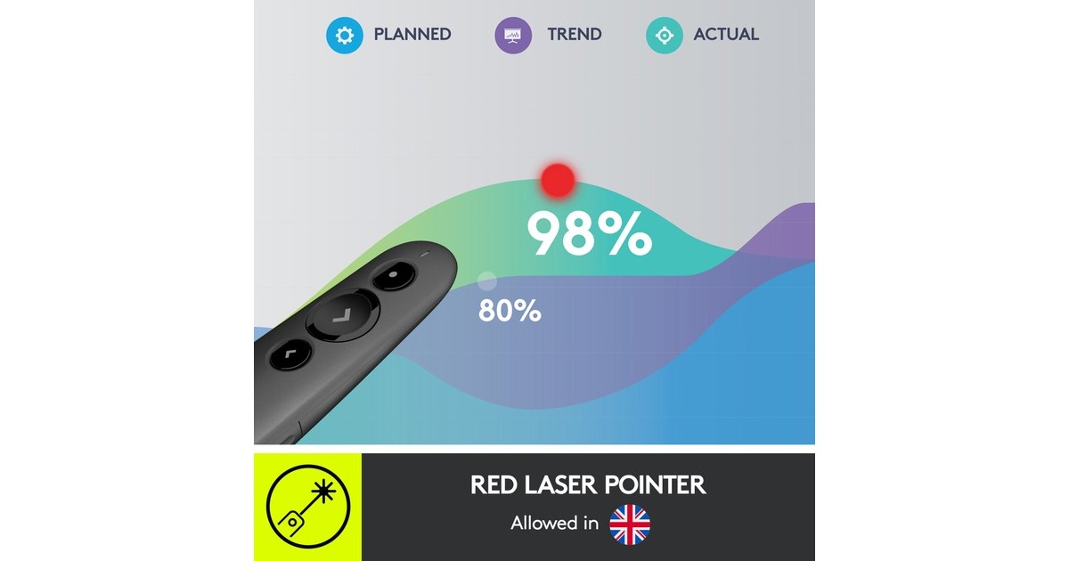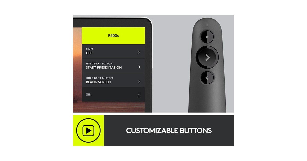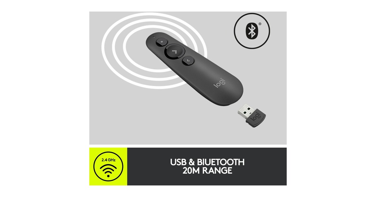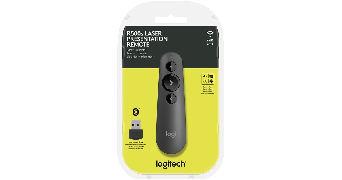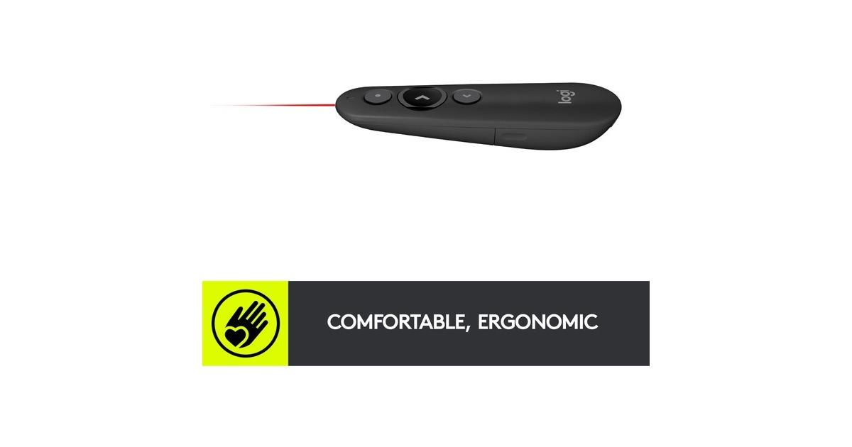 Mit dem Plug-and-Play Presenter R500 von Logitech kann man aus einer Entfernung von bis zu 20 Metern durch Folien navigieren und den Laserpunkt zum Präsentieren nutzen. Der R500 besitzt ein 3-Tasten-Design, das Verwechslungen ausschließt, und liegt dank einer komfortablen Passform sicher in der Hand. So kann man mühelos und selbstbewusst durch die nächste Präsentation führen.Art.-Nr.: 1876901