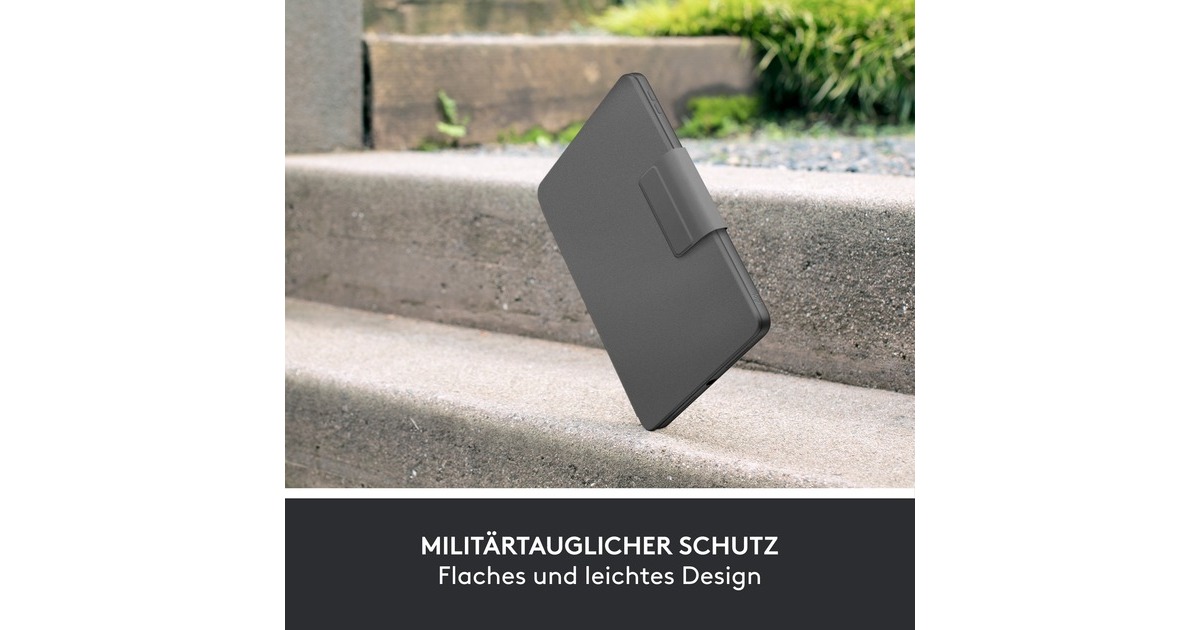 Das schlanke Tastatur-Case Logitech Rugged Folio bietet herausragenden Schutz gegen Sturzschäden für das iPad 10. Generation und ist dank seiner hochleistungsfähigen, versiegelten Tasten, die sowohl Spritzwasser als auch Schmutz abweisen, ideal zum Arbeiten unterwegs. Die TKL-Tastatur mit praktischen iOS-Sondertasten sorgt für ein nahezu geräuschloses und äußerst komfortables Tipperlebnis und im integrierten Halter lässt sich der Logitech Crayon oder Apple Pencil (2. Generation) griffbereit verstauen. Das Rugged Folio stellt zudem die Verbindung zum iPad sofort her und bezieht darüber auch direkt ihren Strom – umständliche Pairing und Aufladen entfällt somit. Mit seinen vier Modi (Tippen, Anschauen, Skizzieren und Lesen) ist das Rugged Folio extrem flexibel und eignet sich für jede Umgebung oder Aufgabe.Art.-Nr.: 1903482