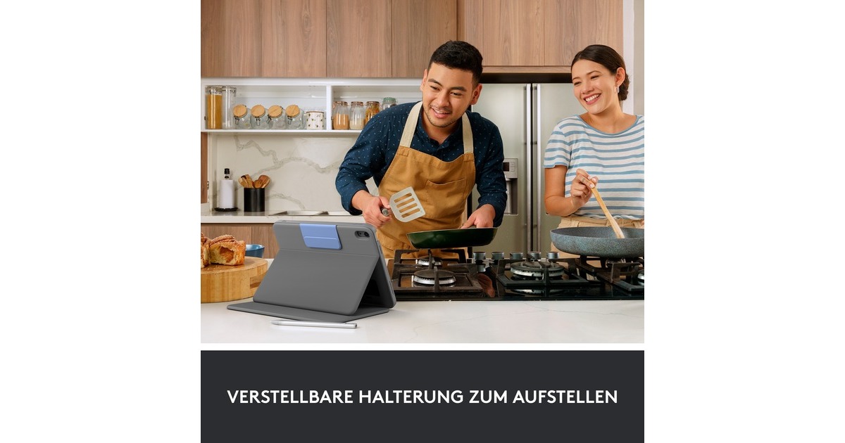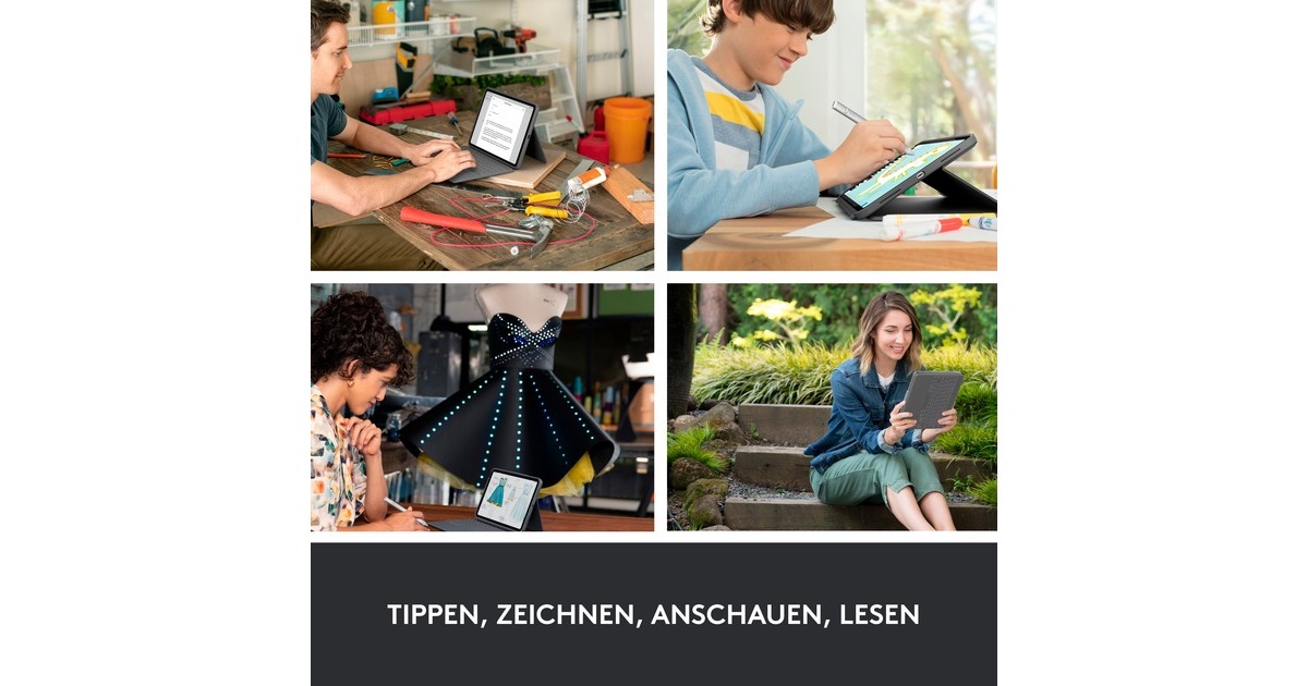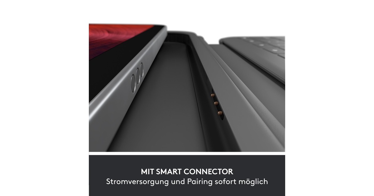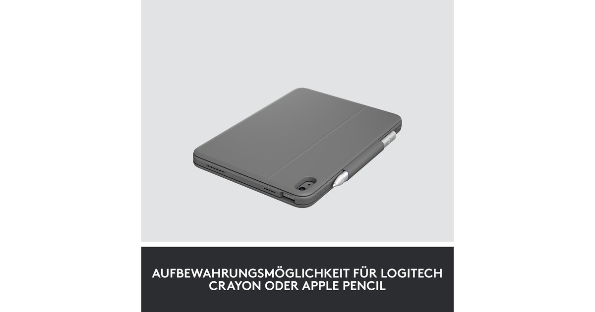 Militärtauglicher Schutz gegen Sturzschäden | 4 Verwendungsmodi | Vollständige Tastenzeile mit iPadOS-Sondertasten | 18 mm Tastenabstand | Laden und Pairen über Smart Connector | Stellhalterung für jeden Winkel (20 - 60 Grad | Aufbewahrungsmöglichkeit für Logitech Crayon, Apple Pencil (2. Generation) und andere digitale Stifte | Sicherer Magnetverschluss |