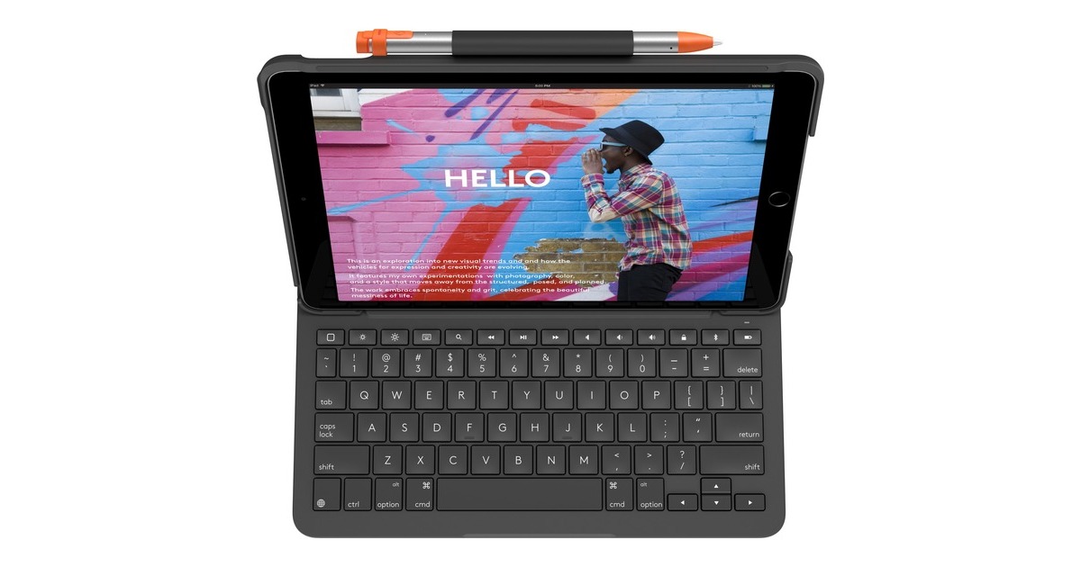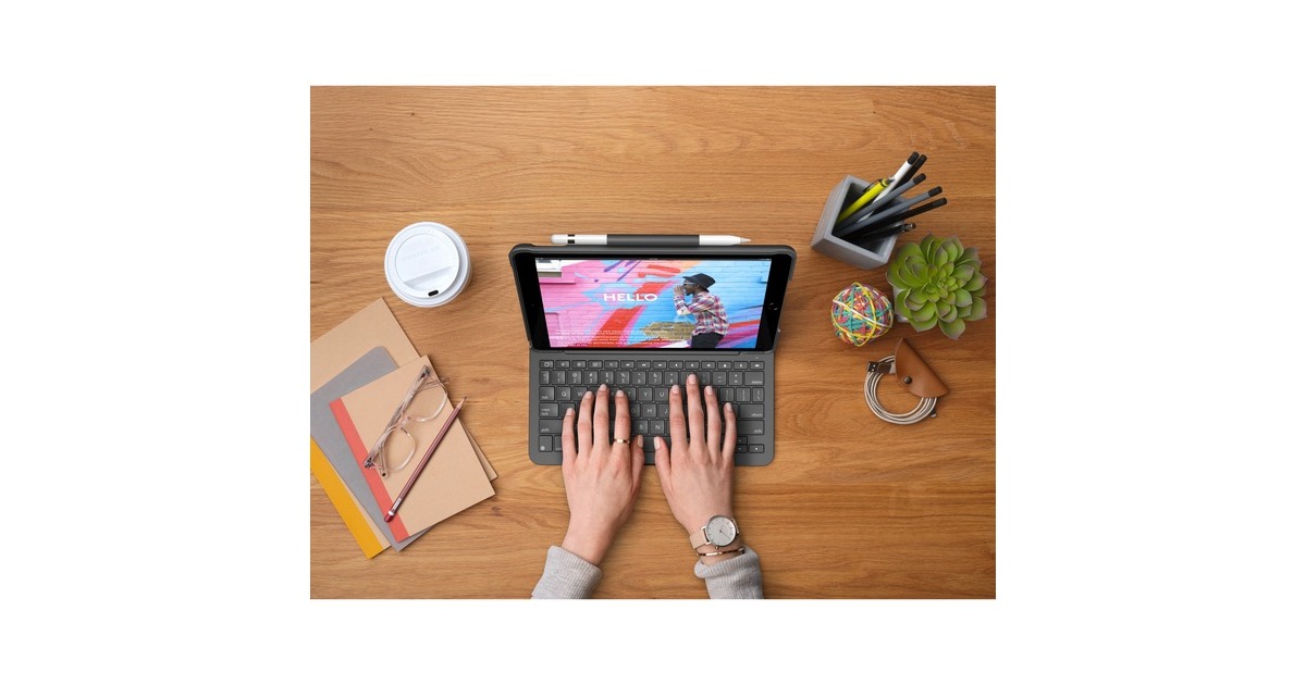 Mit dem Logitech Slim Folio genießt man Tippkomfort wie auf dem Laptop. Das All-in-one-Tastatur-Case im flachen und leichten Design lässt sich ganz einfach verwenden und transportieren und schützt das iPad der 7., 8. und 9. Generation vor Stößen, Kratzern und Spritzern. Die Tastatur ist dank großen, großzügig angeordneten, mechanischen Tasten mit einem Tastenhub von 1,5 mm ausgesprochen komfortabel und die Tastenreihe mit Sondertasten ermöglichen das Ausführen von iOS-spezifischen Aktionen um die Produktivität zu optimieren. Das Slim Folio verfügt zudem über eine praktische Stifthalterung und sorgt dank Bluetooth-Technologie für eine zuverlässige, energieeffiziente und störungsfreie Verbindung zwischen dem iPad und der Tastatur.Art.-Nr.: 1591199