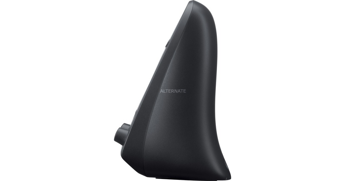 Ein-/Ausschalter sowie Lautstärke- und Tiefenregler im rechten Satelliten |