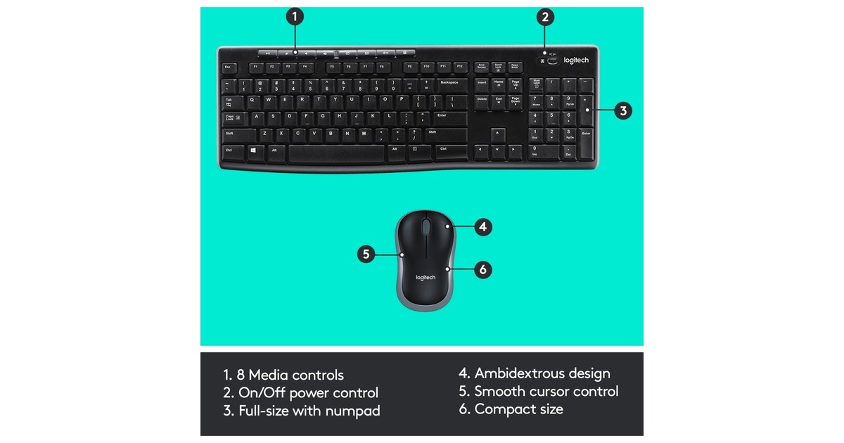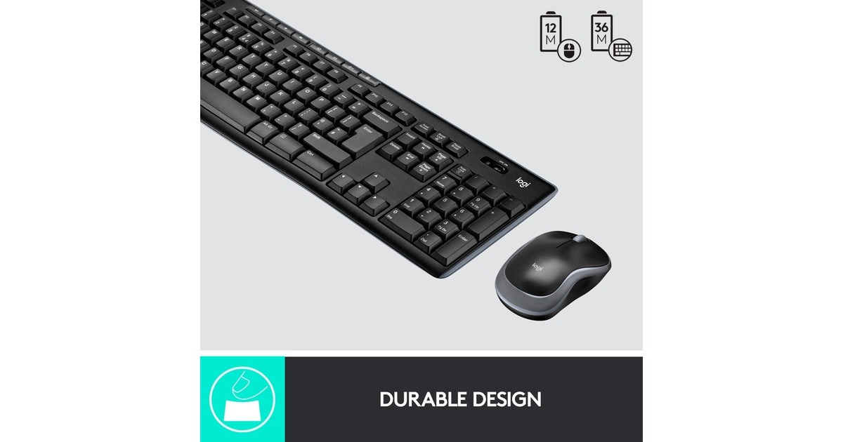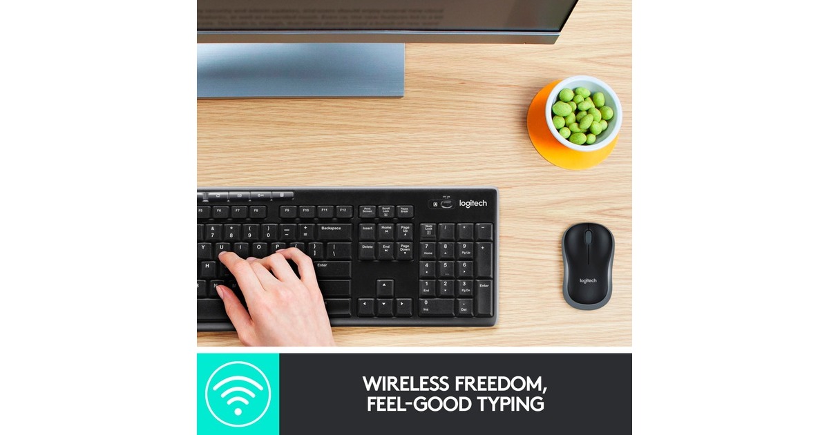 Die Logitech Wireless Combo MK270 ist eine kabellose Kombination aus Tastatur und Maus mit großer Reichweite und langer Batterielebensdauer. Die flache Tastatur sorgt für ein natürliches Gefühl beim Tippen, sodass man auch nach vielen Stunden noch komfortabel arbeiten kann. Die Maus liegt angenehm in der Hand. Dank der kompakten Form passt die Tastatur auf die meisten Tastaturablagen und sorgt so für mehr Platz.Art.-Nr.: 1092672