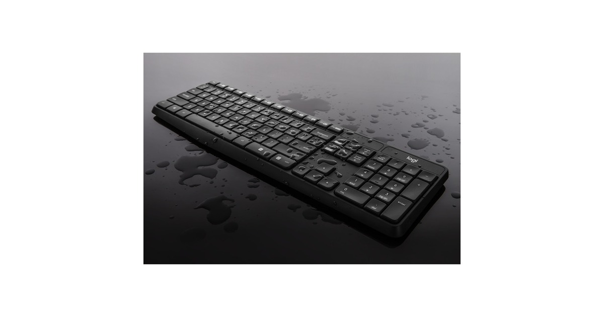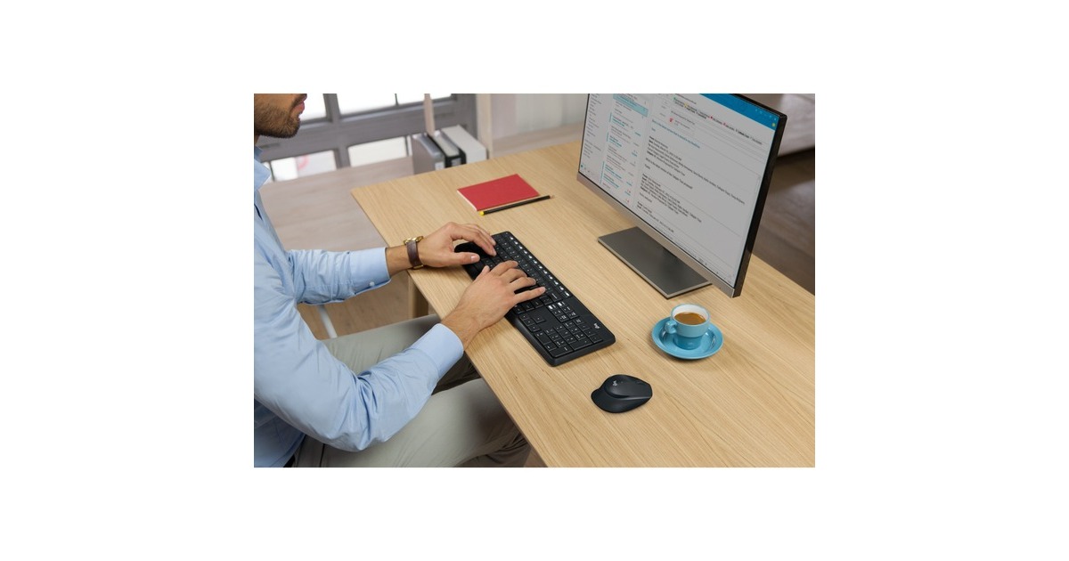 Logitech Non-Unifying Protocol (2.4 GHz) mit Nano-USB-Empfänger; 128-Bit Advanced Encryption Standard (AES) zwischen Geräten und Empfänger; Tastatur: vertraute Tastenanordnung; ultraflache Tasten; anpassbare Tastaturhöhe; lange Batterielebensdauer; Gewicht: 475 g; Maus: Ein-/Ausschalter; Gewicht: 70,5 g |