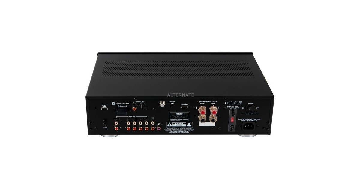 Der Magnat MR 750 ist ein hochwertiger Stereo Hybrid-Receiver mit Transistor- und Röhrentechnik. Über seinen HDMI-Eingang kann der MR 750 nahtlos an TVs und andere Geräte integriert werden, außerdem sorgen die selektierten und bereits eingebrannten Röhren für optimalen Klang. Die Sinusleistung beträgt 140 Watt, wobei die Spitzenleistung bis 250 Watt reicht. Der MR 750 besitzt umfangreiche Anschlussmöglichkeiten, darunter Koaxial, Optisch, Phono oder z.B. auch Bluetooth. Über das eingebaute FM/DAB+ Radio empfängt man zahlreiche Sender und kann viele davon per Schnellzugriff speichern. Für ein optisches Highlight sorgt die Front aus massivem Metall sowie die Bedienelemente aus gebürstetem Aluminum.Art.-Nr.: 1864816
