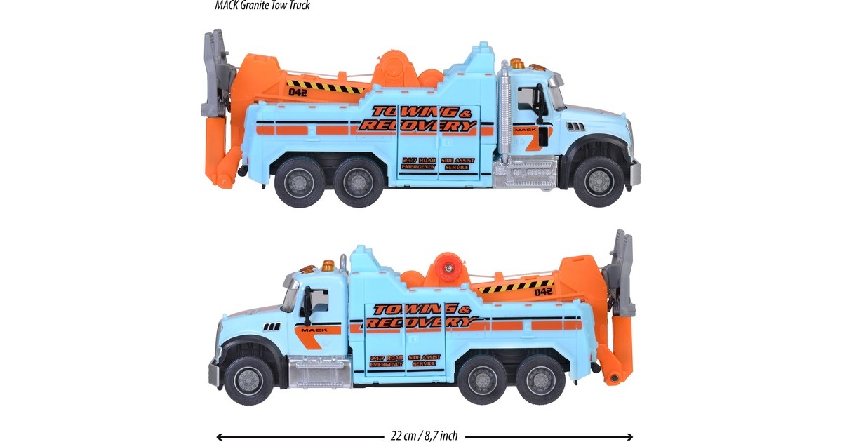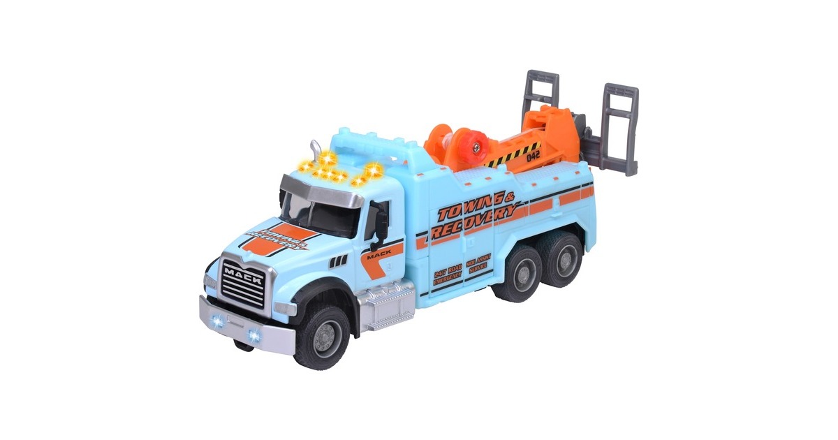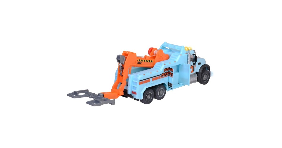 Dieser tolle Spielzeug-Abschleppwagen verfügt über viele Funktionen und ist mit insgesamt 5 Signalleuchten sowie zwei verschiedenen Sounds vielfältig ausgestattet. Wie bei einem echten Abschleppwagen gibt es einen Kran mit Seilwinde und Haken sowie eine schwenkbare Abschleppgabel. Staufächer an den Seiten nehmen Kleinteile auf.Art.-Nr.: 1916105