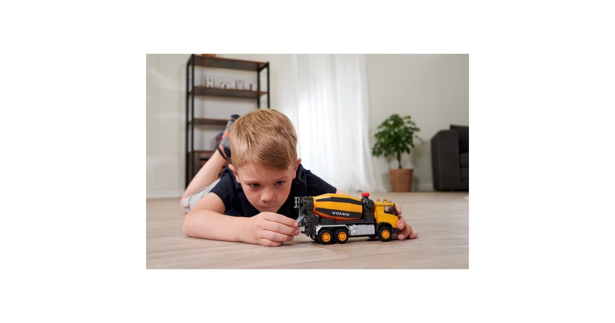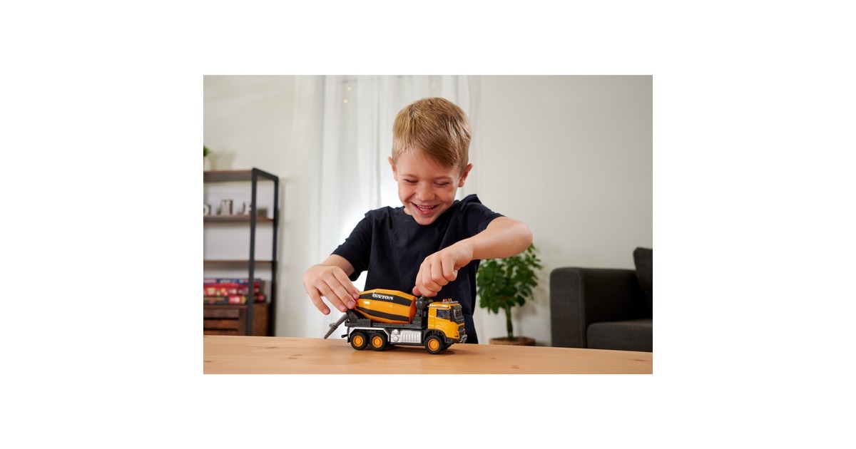 Majorette Volvo Betonmischer: Auf zur nächsten Baustelle! Auf einer richtigen Baustelle werden viele Fahrzeuge benötigt, dazu gehört natürlich auch ein Betonmischer, denn er ist essenziell für den Bau. Der Mischer ist also das perfekte Geschenk für alle Fans von originalgetreuen Baufahrzeugen. Das Spielzeugauto ist mit zwei verschiedenen Sounds sowie Front- und Nebelscheinwerfern ausgestattet, zusätzlich sorgen zwei orangefarbene Signalleuchten auf dem Dach dafür, dass man das Fahrzeug nicht übersehen kann. Für noch mehr Spaß sorgen eine klappbare und eine drehbare Schütte sowie eine Mischtrommel, die drehbar ist, damit das Material hinten über die Schütte hinausbefördert werden kann – da fühlt man sich wie auf einer echten Baustelle. Der Volvo Betonmischer ist robust und ist deshalb für schwere Einsätze gerüstet. Die Fahrerkabine, der Tank und der Kotflügel des Fahrzeugs sind aus Metall, andere Teile aus Kunststoff.