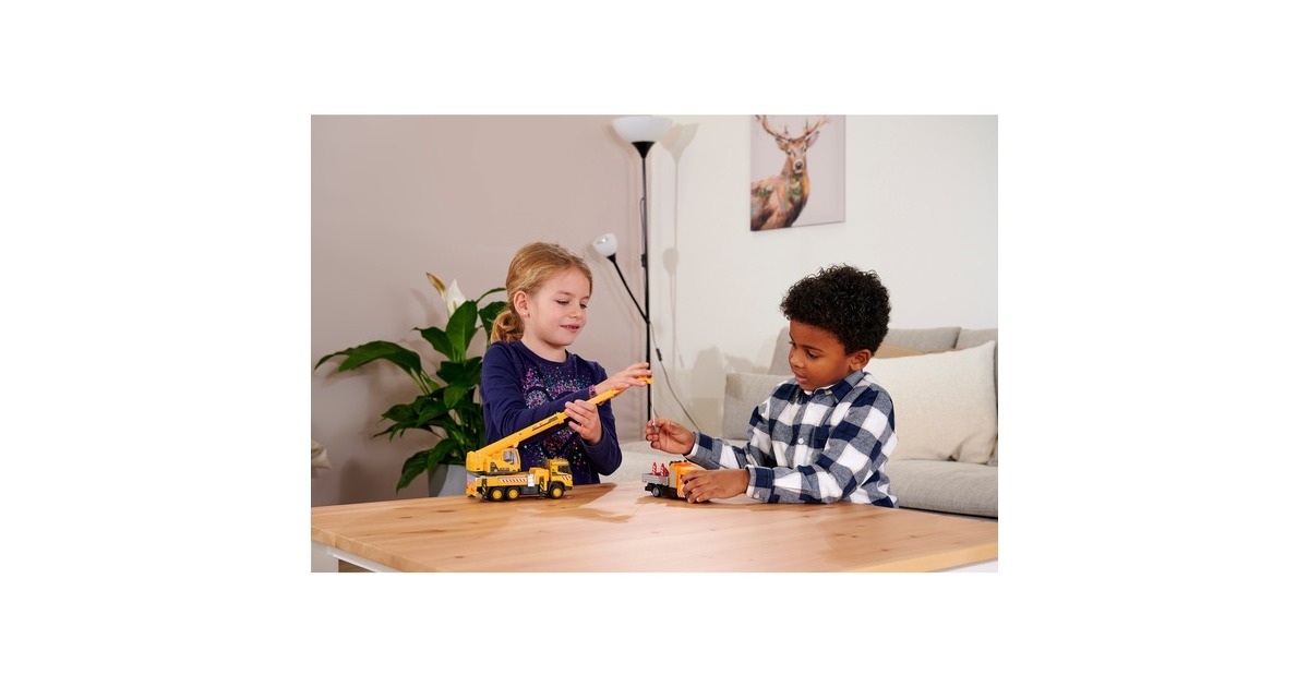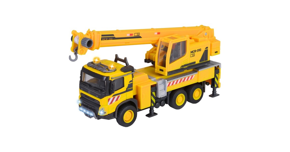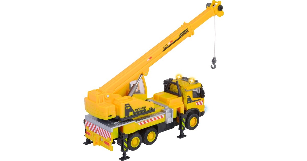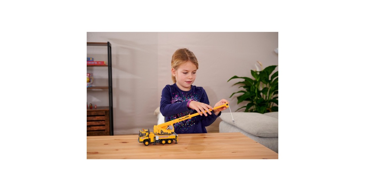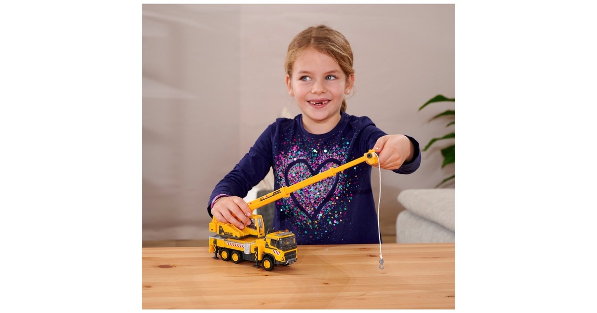 Dieser große Spielzeug-LKW bewegt mühelos Gegenstände durch das Kinderzimmer: Dafür nutzt er Seilwinde und Haken sowie den ausfahrbaren und drehbaren Kranarm mit einer Länge von bis zu 35 cm. Dieses tolle Fahrzeug verfügt außerdem über Sound- und Lichteffekte mit einer Signalleuchte auf dem Dach sowie Front- und Nebelscheinwerfern. Art.-Nr.: 1916103
