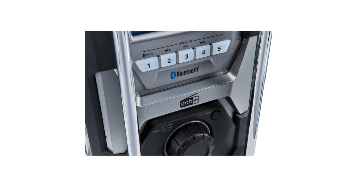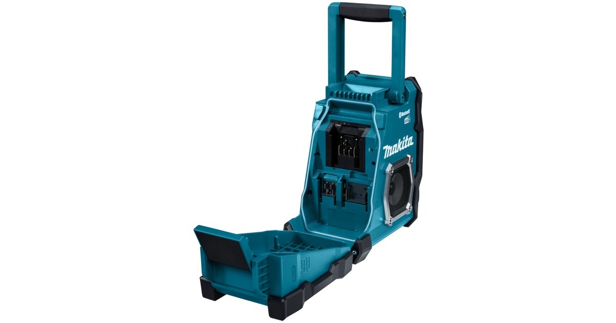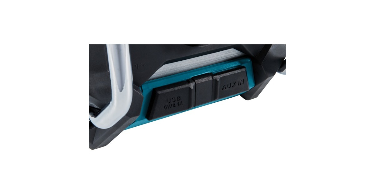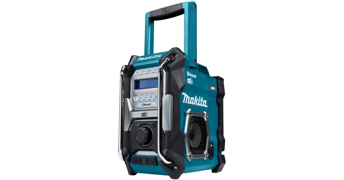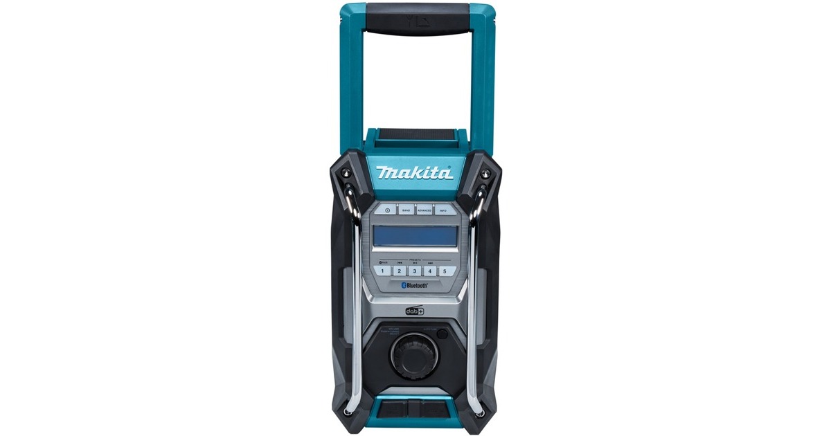 Das robuste hochleistungsfähige Baustellenradio MR004GZ von Makita mit IP65-Gehäuseschutzklassifizierung läuft mit allen Makita-Li-Ion-Schiebeakkus der CXT, LXT und XGT Serie. Es erlaubt eine Wiedergabe über Bluetooth mittels Smartphone, ermöglicht DAB+ Empfang, hat einen AUX- und USB-Anschluss. Letzterer dient auch zum Aufladen des Smartphones. Mit leistungsfähigen Lautsprechern an den Seiten für satten und klaren Sound.Art.-Nr.: 1781815