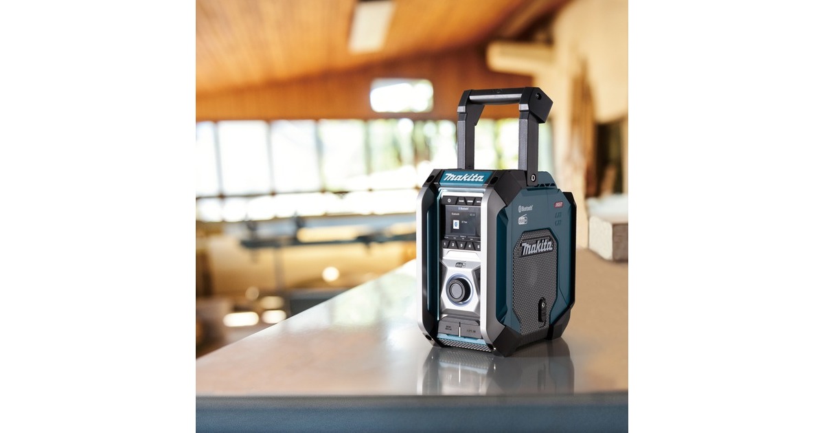 Das robuste hochleistungsfähige Baustellenradio MR007GZ von Makita mit IP65-Gehäuseschutzklassifizierung läuft mit allen Makita-Li-Ion-Schiebeakkus der CXT, LXT und XGT Serie. Es erlaubt eine Wiedergabe über Bluetooth mittels Smartphone, ermöglicht DAB+ Empfang, hat einen AUX- und USB-Anschluss. Letzterer dient auch zum Aufladen des Smartphones. Mit Subwoofer auf der Gehäuseunterseite sowie Mittel- und Hochttonlautsprecher an den Seiten für satten und klaren Sound.Art.-Nr.: 1781814