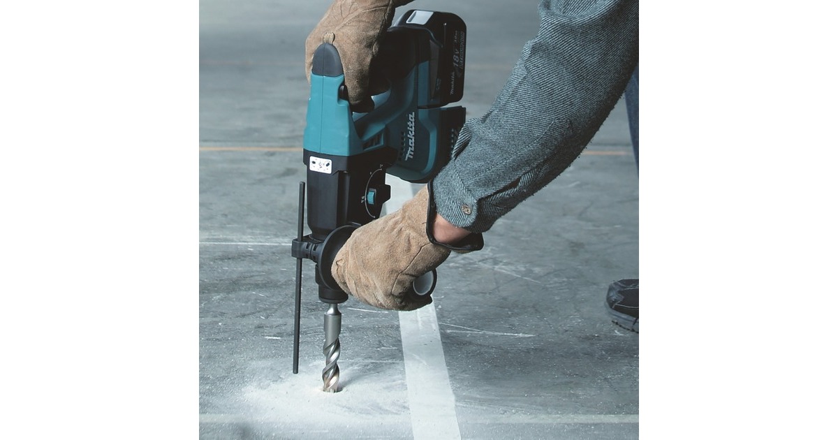Der Makita Akku-Kombihammer DHR243RTJ besitzt einen leistungsstarken bürstenlosen Motor, der von einem 18 Volt Lithium-Ionen-Akku mit Energie versorgt wird. Er eignet sich zum Bohren, Hammerbohren und Meißeln. Die Einzelschlagstärke erreicht bis zu 2,0 Joule, in Beton beträgt die Bohrleistung bis zu 24mm. Ein Anschluss für eine Staubabsaugung ist direkt integriert. Ein spezieller Handgriff mit eingelegtem Gummipolster sorgt jederzeit für sicheren Halt und komfortables Arbeiten. Die Ausrastkupplung schützt bei schlagartigem Blockieren des Bohrers. Mit dem Tiefenanschlag lässt sich die genaue Bohrtiefe einstellen. Die SDS-Plus-Werkzeugaufnahme ermöglicht einen sehr schnellen Wechsel des Werkzeugaufsatzes. Zusätzlich ist der Akku-Kombihammer DHR243RTJ auch mit einem Schnellwechsel-Bohrfutter für zylindrische Bohrer ausgestattet.Art.-Nr.: 1222652