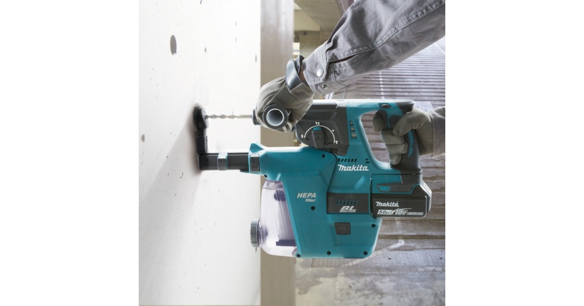 Der Makita Akku-Kombihammer DHR243RTJW besitzt einen leistungsstarken bürstenlosen Motor, der von einem 18 Volt Lithium-Ionen-Akku mit Energie versorgt wird. Er eignet sich zum Bohren, Hammerbohren und Meißeln. Die Einzelschlagstärke erreicht bis zu 2,0 Joule, in Beton beträgt die Bohrleistung bis zu 24mm. Ein Anschluss für eine Staubabsaugung ist direkt integriert, die Staubabsaugung DX07 mit hocheffektivem HEPA-Filter ist im Lieferumfang enthalten. Ein spezieller Handgriff mit eingelegtem Gummipolster sorgt jederzeit für sicheren Halt und komfortables Arbeiten. Die Ausrastkupplung schützt bei schlagartigem Blockieren des Meißels. Mit dem Tiefenanschlag lässt sich die genaue Bohrtiefe einstellen. Die SDS-Plus-Werkzeugaufnahme ermöglicht einen sehr schnellen Wechsel des Werkzeugaufsatzes. Zusätzlich ist der Akku-Kombihammer DHR243RTJW auch mit einem Schnellwechsel-Bohrfutter für zylindrische Bohrer ausgestattet.Art.-Nr.: 1606304