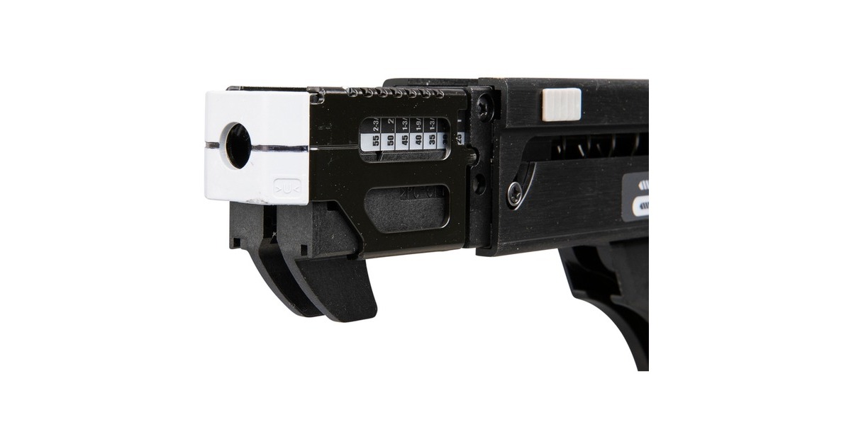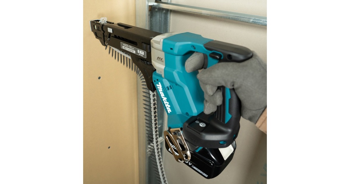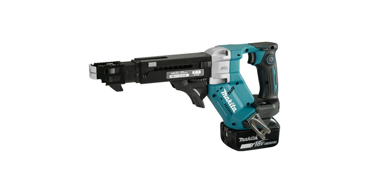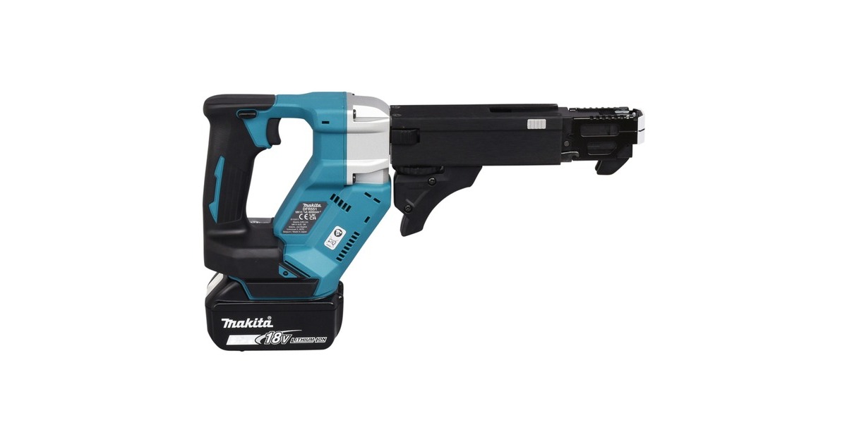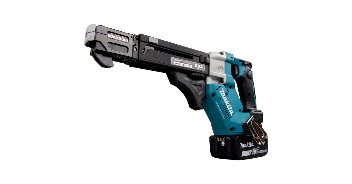 Der Makita Akku-Magazinschrauber DFR551Z mit Zuführautomatik und Push-Drive-Technologie eignet sich ideal zur schnellen Verarbeitung von gurtmagazinierten Schrauben Ø 3,5 - 4,2mm und 25 bis 55mm Länge. Mit aktiviertem Push-Drive-Modus startet die Maschine automatisch durch die Druckausübung auf den Schraubvorsatz. Dadurch wird die Leerlaufzeit minimiert und die Akku-Laufzeit verlängert. Die lange Schraubenführung verhindert das Verkanten des Gurtes. Dabei liefert der bürstenlose, wartungsfreie und langlebige Motor Leistung ohne Drehmomentverlust bei geringer Stromaufnahme. Der Akku-Magazinschrauber DFR551Z verfügt außerdem über eine einstellbare Eintreibtiefe für unterschiedliche Schraubenlängen, eine hohe Drehzahl für einen schnellen und effektiven Arbeitsfortschritt und einen praktischen Einhängebügel zum Einhaken des Schraubers am Gürtel oder an der Leiter.Art.-Nr.: 1880510
