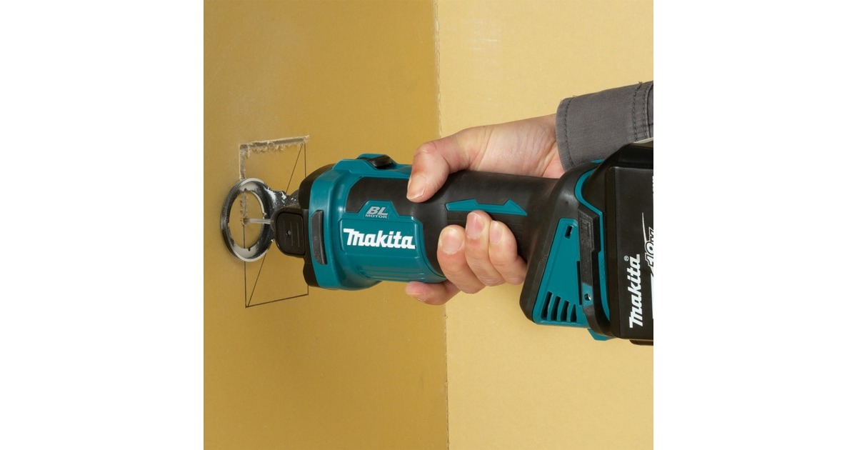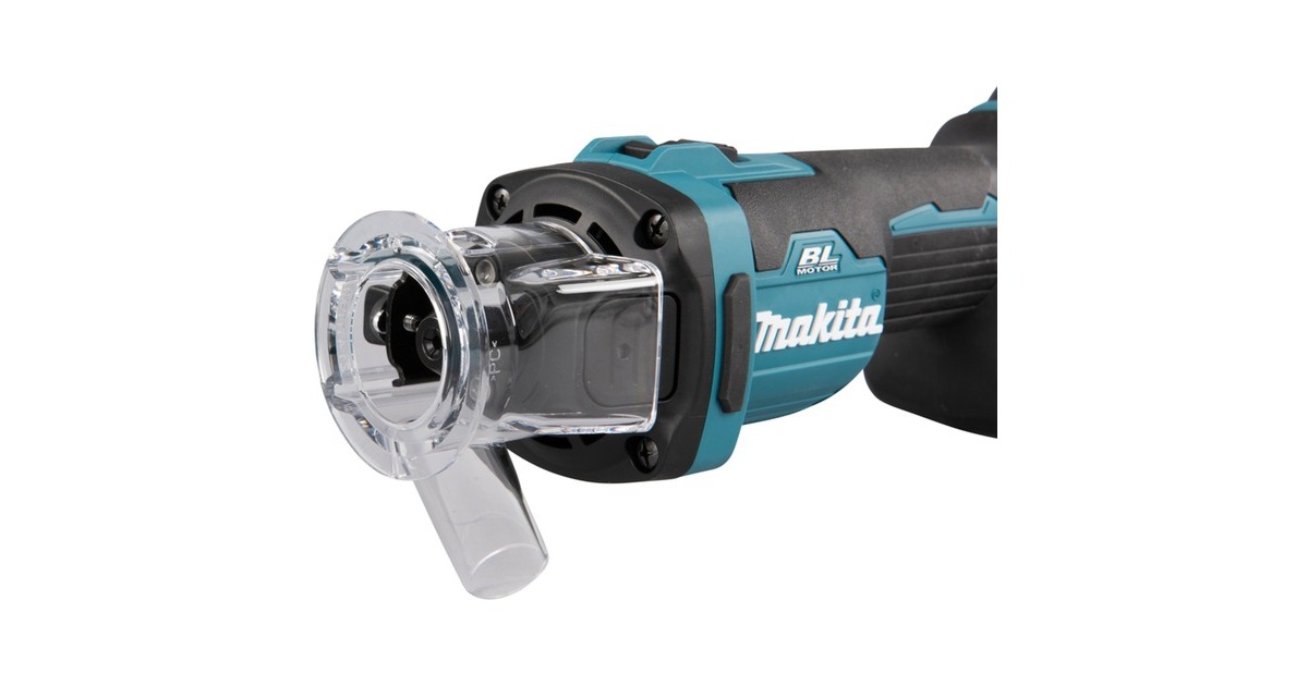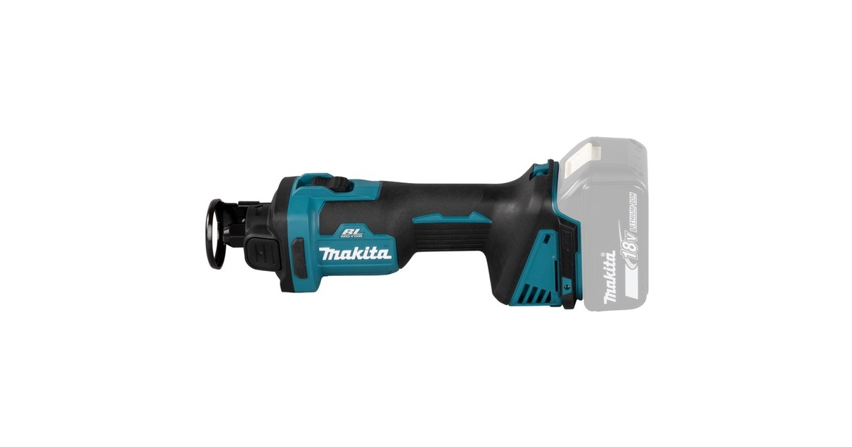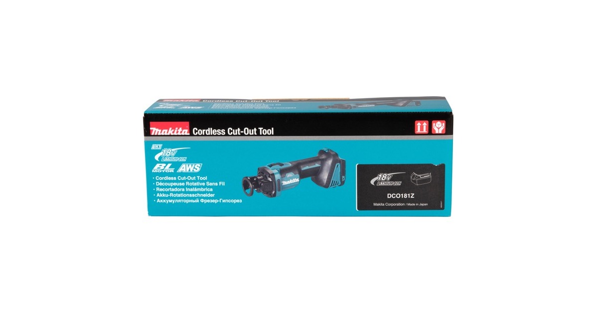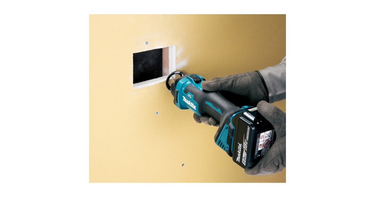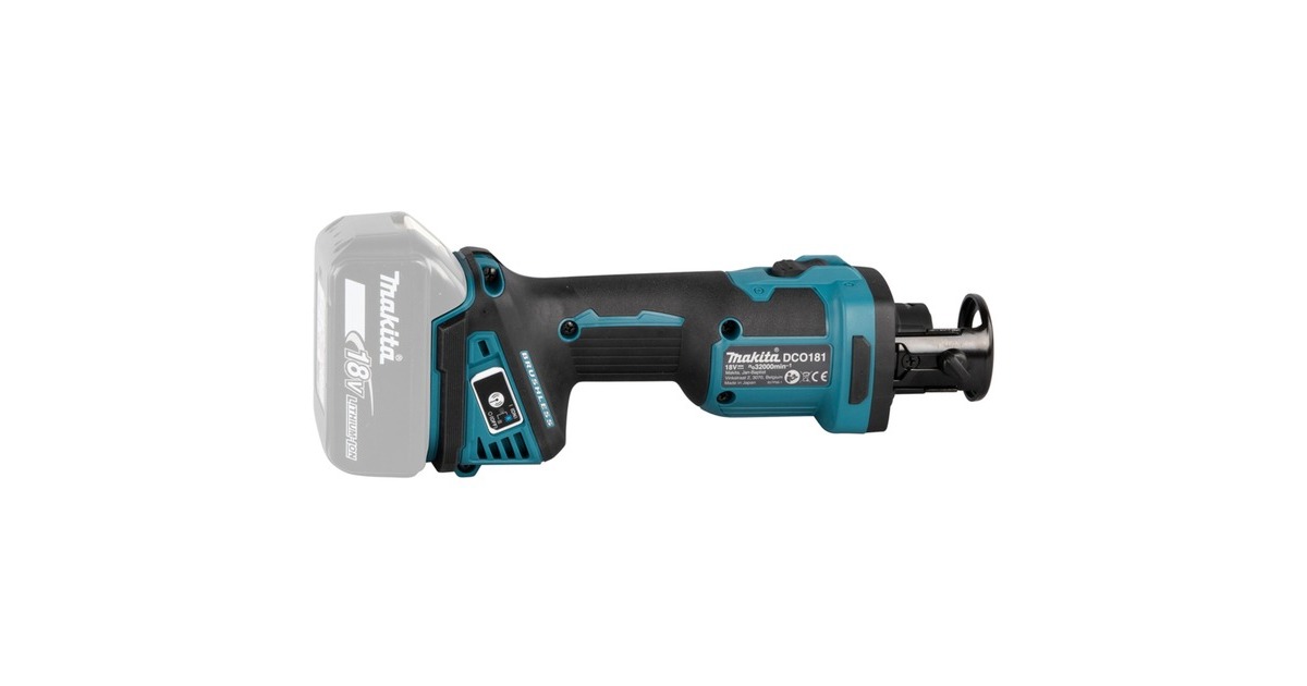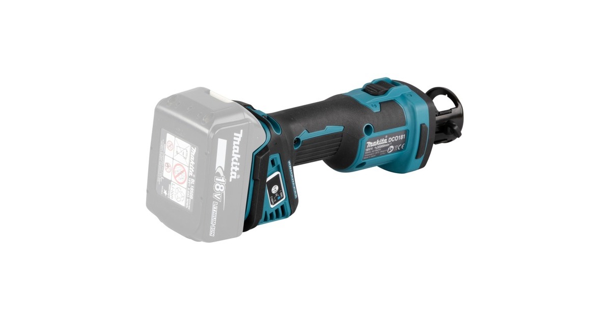Der Makita Akku-Rotationsschneider DCO181Z eignet sich zum schnellen Fertigen von Ausschnitten z.B. für die Elektroinstallation, zum Nacharbeiten oder Anpassen von Ausschnitten und Kanten. Er ist leicht und handlich und verfügt über eine einfache Schnitttiefeneinstellung. Der bürstenlose Motor sorgt für effizienten Umgang mit der Energie und damit für längere Akku-Laufzeiten. Die Anti-Restart-Funktion verhindert ein unbeabsichtigtes Einschalten nach dem Akku-Wechsel, und der Sanftanlauf reduziert Anlaufstöße auf ein Minimum und sorgt für ruckfreies Anlaufen