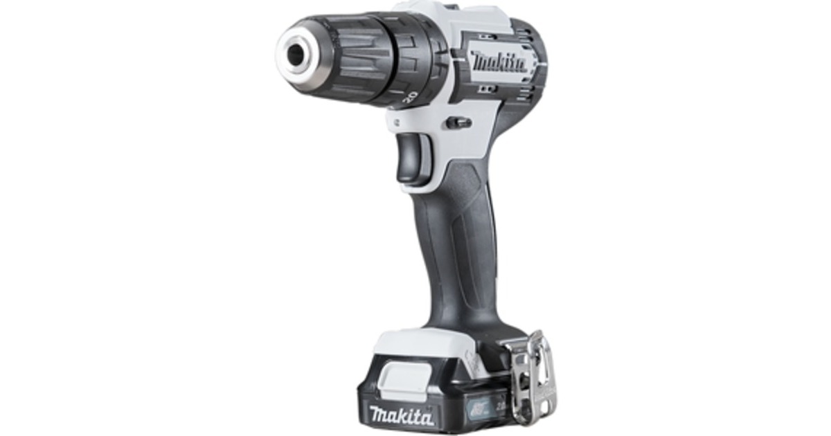 Der leichte Akku-Schlagbohrschrauber HP333DSAW von Makita in der Sonderfarbe weiß bietet einen kraftvollen Motor, ein hohes Drehmoment von 30 Nm und ein 2-Gang-Getriebe mit Schnellspannbohrfutter. Mit dem 2-Gang-Getriebe und der 19-fachen Drehmomenteinstellung plus Bohrstufe ist er für jede Aufgabe gerüstet. Das Schlagwerk ist zum Schrauben abschaltbar. Dunklere Arbeitsbereiche sind kein Problem, denn die leuchtstarke LED bringt Licht auch in die dunkelsten Ecken. Im Bereich Sicherheit überzeugt der Akku-Schlagbohrschrauber HP333DSAW mit vielen Funktionen, wie einer Motorbremse, Temperaturüberwachung, Überlastschutz und Tiefentladeschutz.Art.-Nr.: 1847687