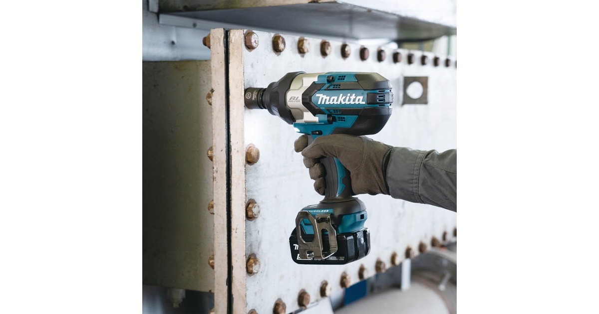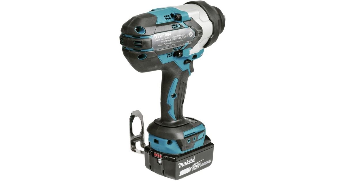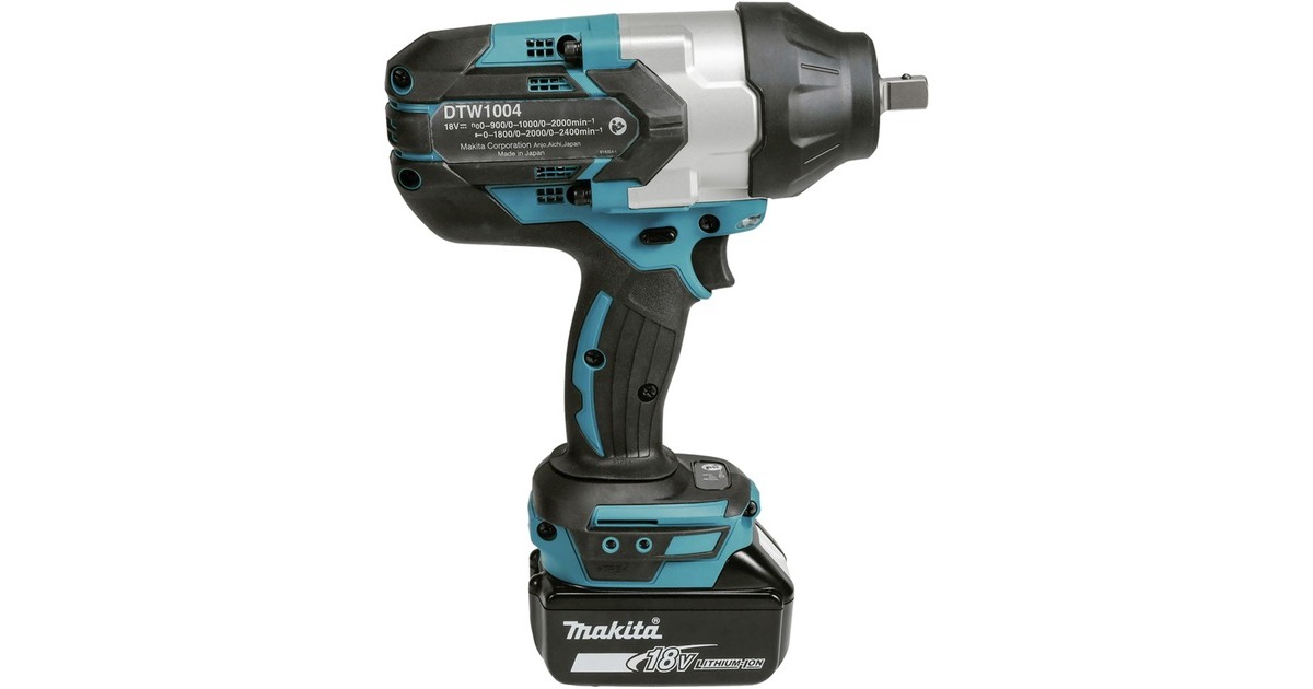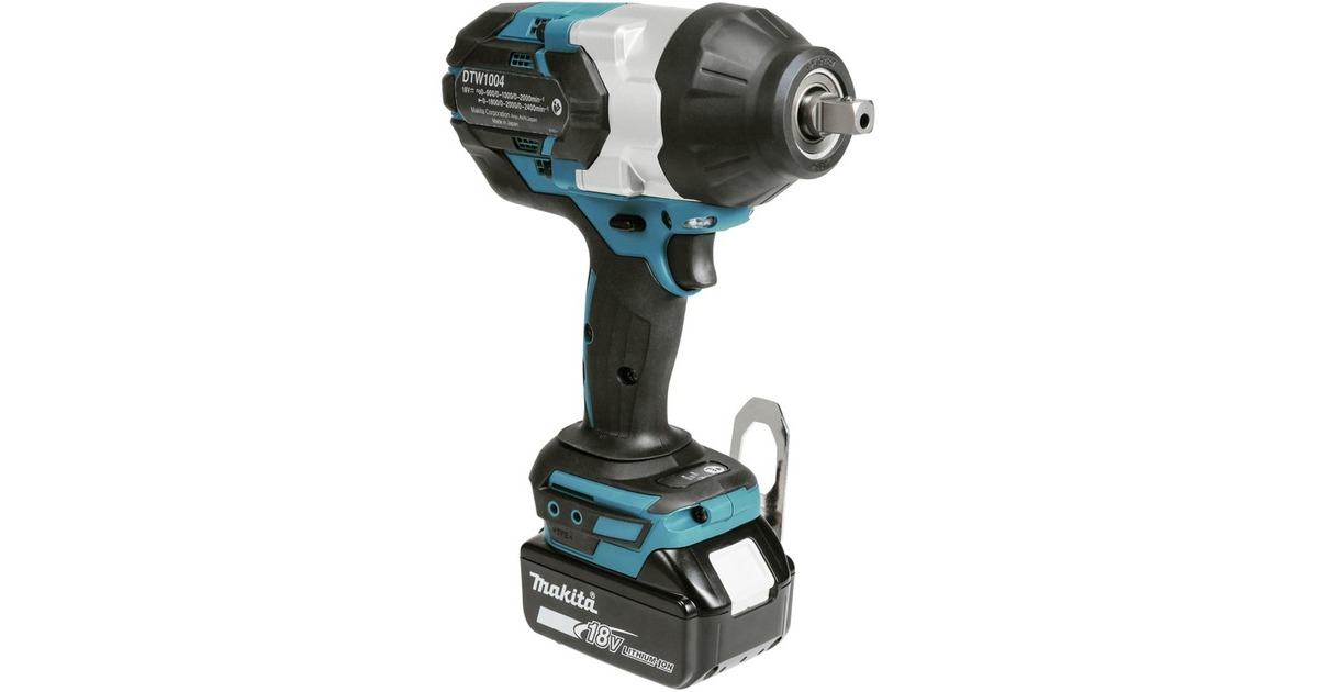Der MAKITA Akku-Schlagschrauber DTW1004Z ist ein sehr kräftiger Schlagschrauber in der 18-Volt-Klasse mit hohem Drehmoment von 1.050 Nm und einem Lösemoment von 1.300 Nm. Er eignet sich z.B. zum Reifenwechseln ohne störende Kabel oder Druckluftschlauch. Er überzeugt durch eine in 3 Stufen regelbare Dreh- und Schlagzahl, einen aufwändigen Schutz gegen Staub und Spritzwasser und eine Akku-Kapazitätsanzeige. Auch dunklere Arbeitsbereiche sind kein Problem, denn die leuchtstarke LED mit Nachglimmfunktion bringt Licht in die dunkelsten Ecken. Der bürstenlose Motor sorgt für mehr Ausdauer, längere Lebensdauer und kompaktere Bauweise. Der Akku-Schlagschrauber DTW1004Z verfügt außerdem über eine Motorbremse und einen gut erreichbaren Umschalter für Rechts-/Links-Lauf.Art.-Nr.: 100032778