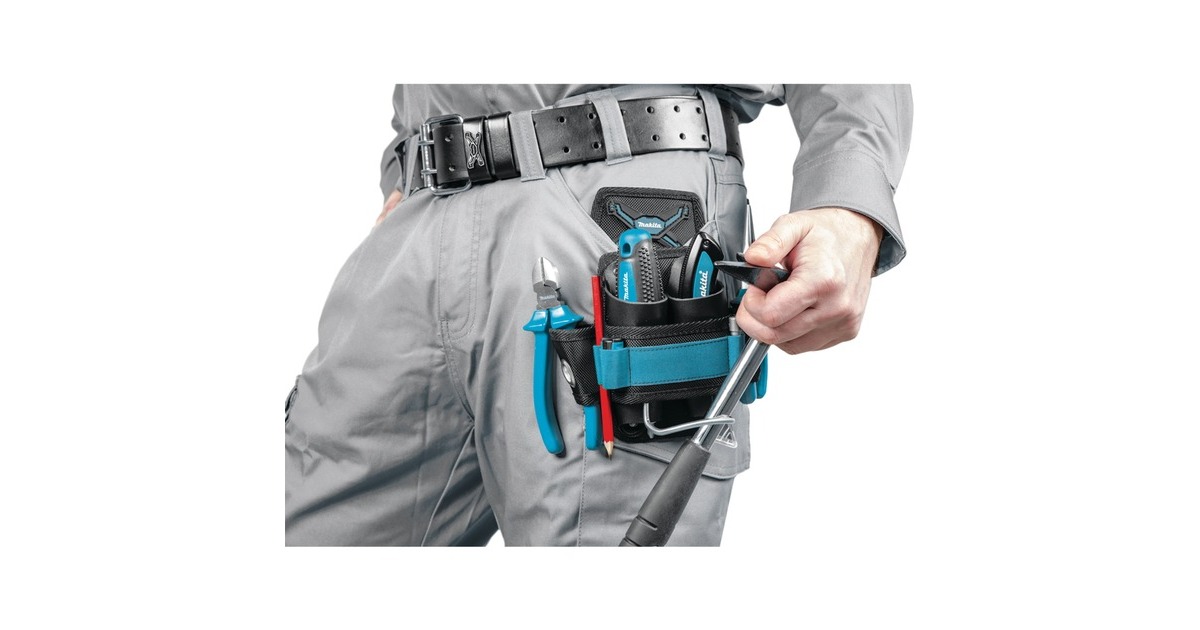 Der Hammer- und Werkzeughalter E-05228 von Makita ist ein frei schwingender Werkzeughalter zur Befestigung an der Arbeitshose oder am Gürtel. Durch eine Feststellschraube kann die Beweglichkeit reguliert werden. Die starke Vernietung sorgt für zusätzliche Haltbarkeit. Das offene Design ermöglicht eine optimale Übersicht. Der Halter bietet zahlreiche innen- und außenliegende Schlaufen. Er eignet sich für nahezu alle Hammerformen. Der Hammerhalter ist aus Edelstahl, die beiden weit geöffneten Messerhalter aus echtem Leder. Zwei seitliche Halter dienen zum Verstauen von größerem Handwerkzeug. Elastische Schlaufen an den Seiten des Halters und ein elastisches Band nehmen weiteres Werkzeug auf. Die Gürtelschlaufe aus stabilem Polypropylen passt für jegliche Art von Gürteln bis 50mm Breite. Die verstärkte Rückwand bietet zusätzliche Stabilität, außerdem passt er auf das Strap-Belt-System. Das baustellentaugliche Design wurde mit langlebigen, vernieteten Materialien kombiniert.Art.-Nr.: 1739358