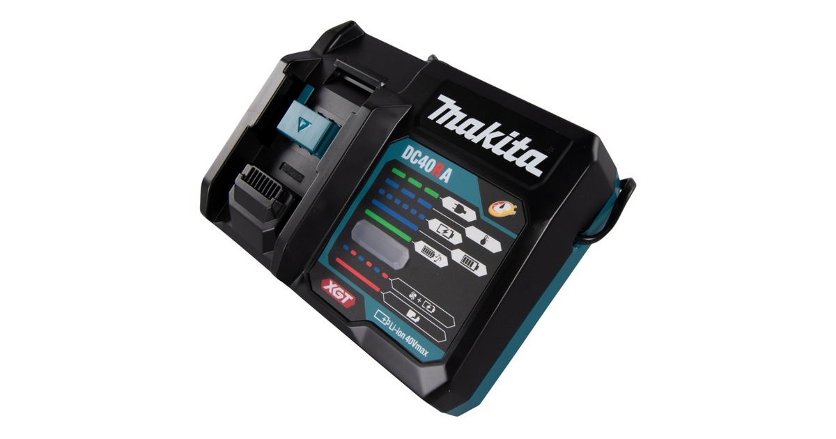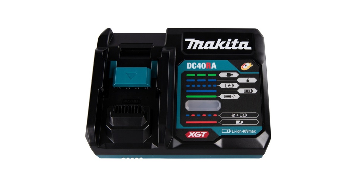 Das Makita Schnellladegerät DC40RA eignet sich für alle 40 V max. XGT-Akkus und bietet eine wählbare Melodie, als Signal für die Beendigung