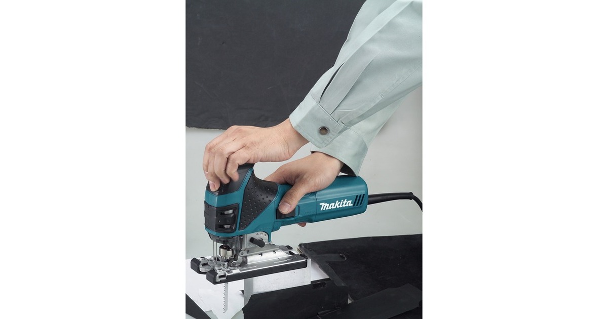 Die Makita Stichsäge 4351FCTJ mit 4-stufigem Pendelhub wird mit Sägeblatt-Set im Systainer-Koffer geliefert und überzeugt mit ihrer kompakten Größe und dem geringen Gewicht. Präzision beim Bearbeiten von jedem Material gewährleistet die elektronisch einstellbare Hubzahl. Die Grundplatte aus Aluminium-Druckguss ist beidseitig um 45° schwenkbar, und die Vierkant-Hubstange sorgt für weniger Verkanten bei Kurvenschnitten. Mit ihrem 720-Watt-Motor erlaubt die Stichsäge 4351FCTJ Schnittiefen von bis zu 135 mm in Holz und 10 mm in Stahl bei einem Hub von 26 mm. Der Sägeblattwechsel erfolgt werkzeuglos mit Schnellspannbügel, und die integrierte LED-Arbeitleuchte erleichtert die Schnittführung.Art.-Nr.: 1085358