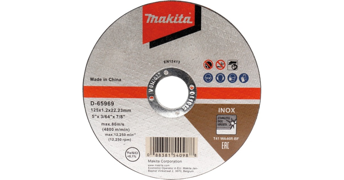 Die robusten Inox Trennscheiben D-65969-12 von Makita sind nach Spezifikation WA46R und EN12413 gefertigt. Sie sind für Stahl und Edelstahl INOX vorgesehen. Mit 22,23mm Bohrungsdurchmesser eignen sie sich für kleine Standard Winkelschleifer mit Spannmutter.Art.-Nr.: 1609377