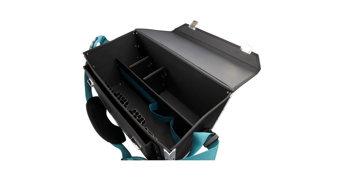 Der mit Aluminium verstärkte Werkzeugkoffer E-05424 verfügt im Innern über 20 verschieden große Kunststofflaschen für Handwerkzeug, drei elastische Bänder sowie vier herausnehmbare Trennwände für bspw. Maschinen. Ein vorderes Fach dient zur Verwahrung von Dokumenten. Die Kanten sind mit Aluminium verstärkt.Art.-Nr.: 1743728