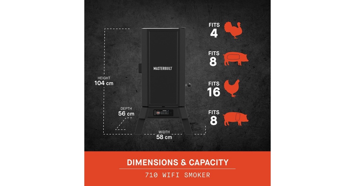 Der digitale elektrische Smoker 710 WiFi von Masterbuilt verbindet Innovation und Komfort mit einem ultimative Räuchererlebnis. Der Smoker mit 4.587cm² Grillfläche auf vier Ebenen lässt sich von überall aus mit der neuen WiFi-Technologie von Masterbuilt steuern. Die gewünschte Räuchertemperatur von 38°C bis 135°C und die Räucherzeit werden einfach am digitalen Bedienfeld oder mithilfe der Masterbuilt-App eingestellt, mit der man außerdem Benachrichtigungen erhält, die Kerntemperaturfühler überwachen und neue Rezepte von überall aus entdecken kann. Der patentierte seitliche Räucherchips-Lader sorgt für eine kontinuierliche Zugabe von Raucharoma, ohne dass dazu die Tür des Smokers geöffnet werden muss. Mit bewährten Funktionen wie der patentierten Holzschnitzelschale, der entnehmbaren Wasserschüssel und den integrierten Fleischthermometern erlebt man innovative Innovationen gepaart mit der Einfachheit traditioneller Kochtechniken.Art.-Nr.: 100024124
